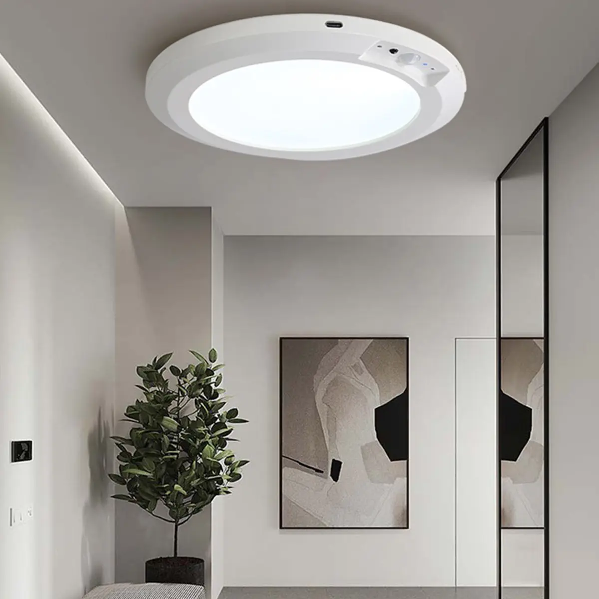 【USB Rechargeable and Long-lasting】The rechargeable motion sensor ceiling light has a built-in 5000mAh high-capacity battery, no need to buy extra batteries. One charge can last for 7-10 hours in continuous mode, and can reach 15-16 hours in constant light mode. (Depending on brightness and frequency of use)