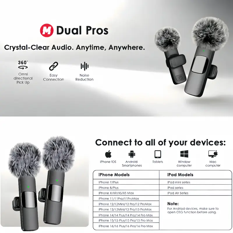 Whether you're shooting vlogs, doing interviews, recording podcasts, or creating TikTok content, it handles solo or duo recording with ease!