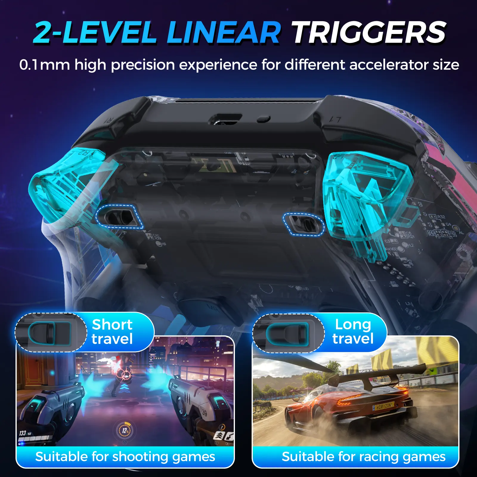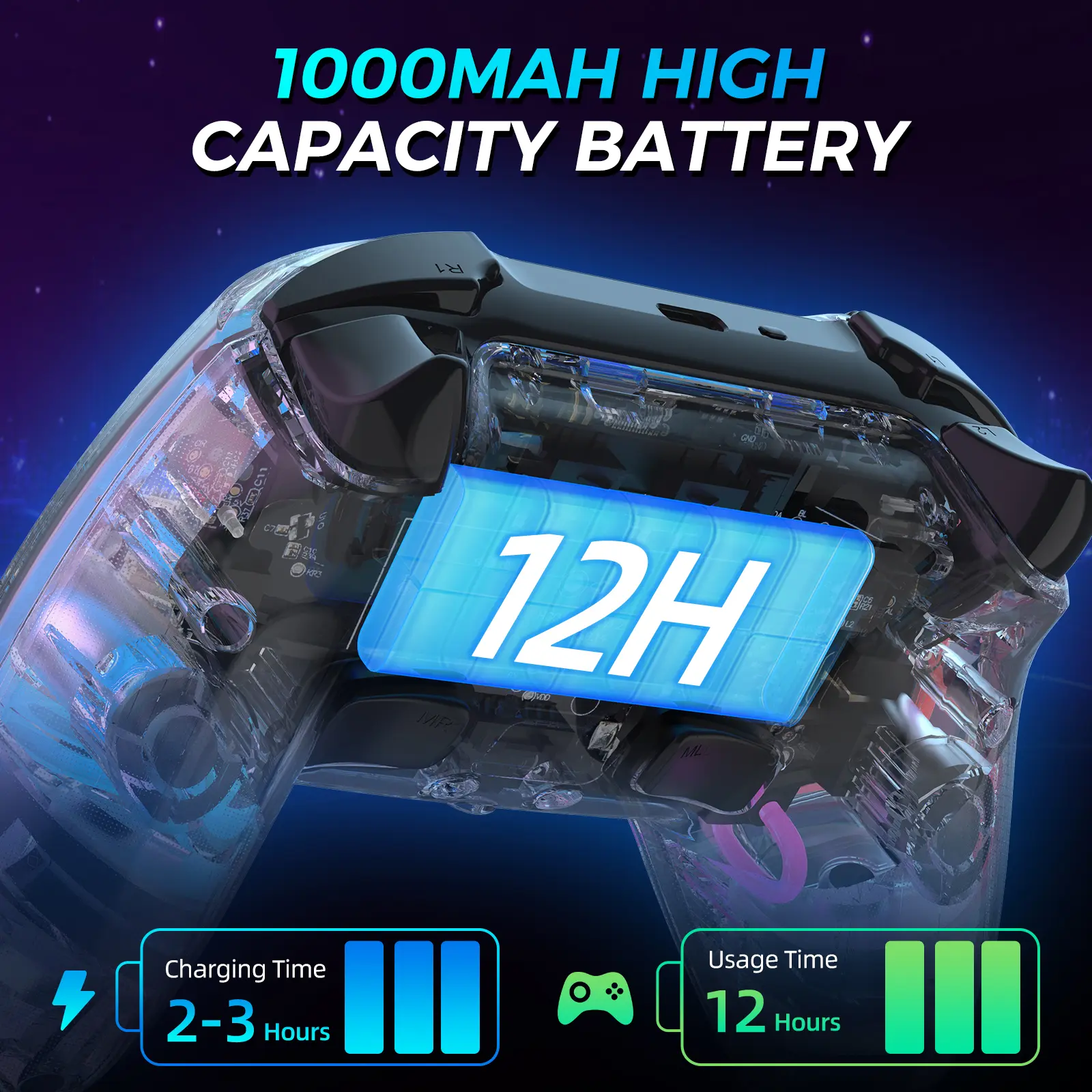 IINE Bastet Wireless Transparent Controller for PS4/Switch/PC/Android/iOs with Touchpad Hall Effect Trgger Hall Joystick Headphone Jack Macro & Turbo 6-Axis Gyro Sensor