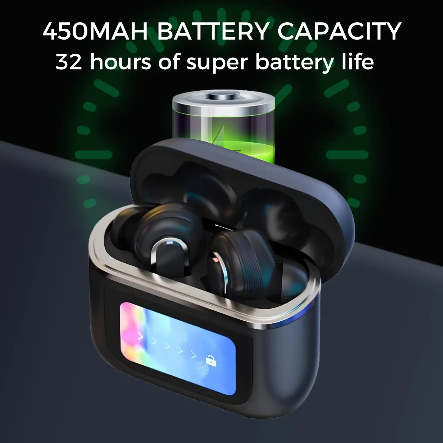 ·Touchscreen Smart Charging Case: 1.47" full-color touchscreen for music control, volume, EQ modes, wallpaper, calls, and more. Swipe or tap for over 10 built-in functions.