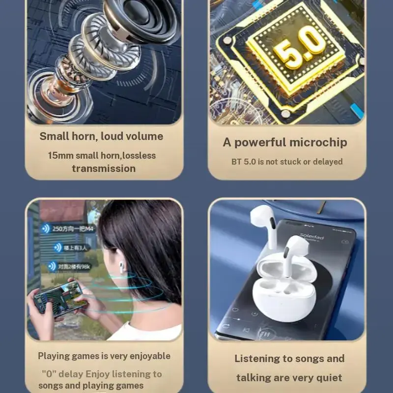 Wireless Bluetooth-compatible Earbuds Hi-Fi Stereo Sound, Long Lasting Battery, Sports Headphones, USB PD Charging, Non-Button Lithium Polymer
