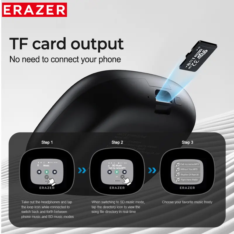 5. ERAZER OWS Touch Screen Earphone Bluetooth 5.4 Wireless Headphones oise Canceling TF Card Headset HIFI Stereo Full-Color Display Multifunctional Earbuds With Mic