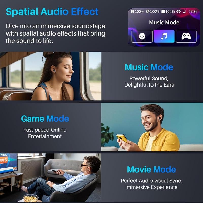 ·[Integrated 1.47" LCD Screen Charging Case] Our innovation charging case providing an easy access to music control/audio adjustment/noise-cancelling mode/400MB storage offline playlack, Including a built-in flashlight/find-my-headphone/switch wallpapers feature, making them versatile and practical for everyday use.