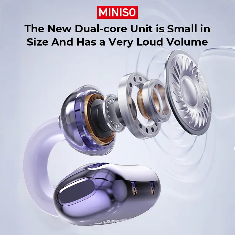 Sound quality technology: Adopts new dual-core unit, with high-resolution bass enhancement technology, reduces sound leakage through directional sound transmission technology, near-ear directional sound waves combined with reverse sound waves to cancel, and optimizes sound quality.