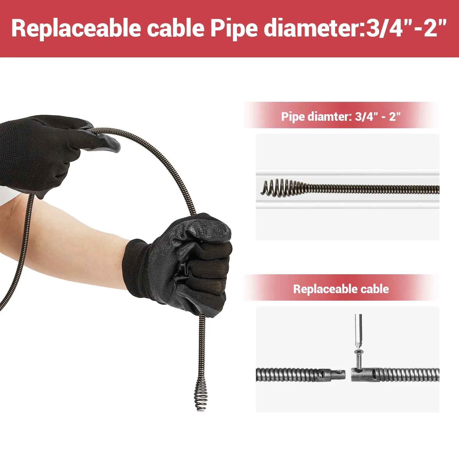 ·Easy Cable Control: Effortlessly extend and retract the cable using the user-friendly lever or button. Switch between forward, neutral, and reverse modes to crush or extract stubborn clogs without damaging pipes.
