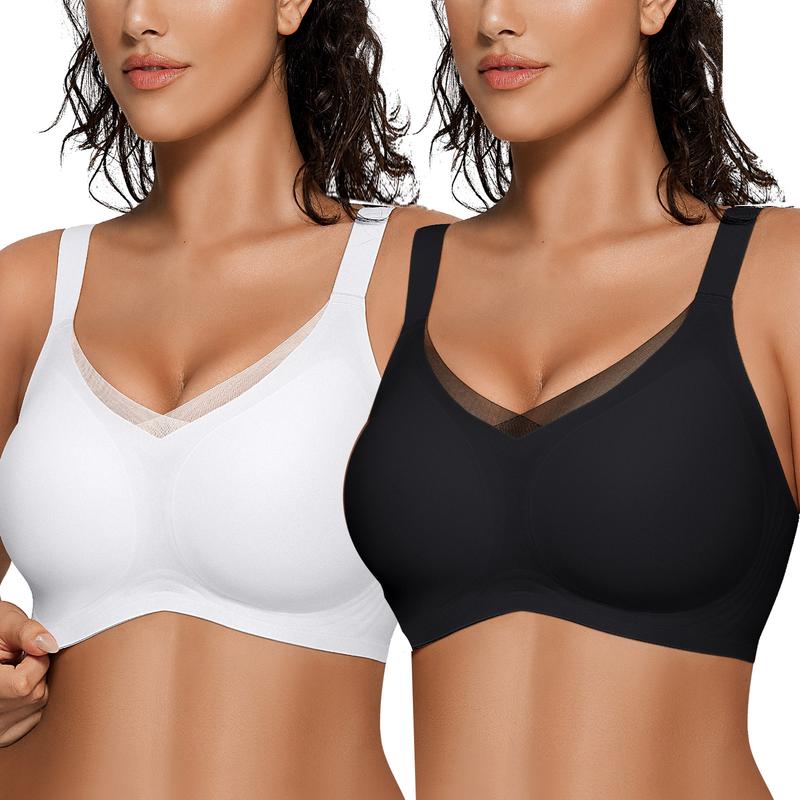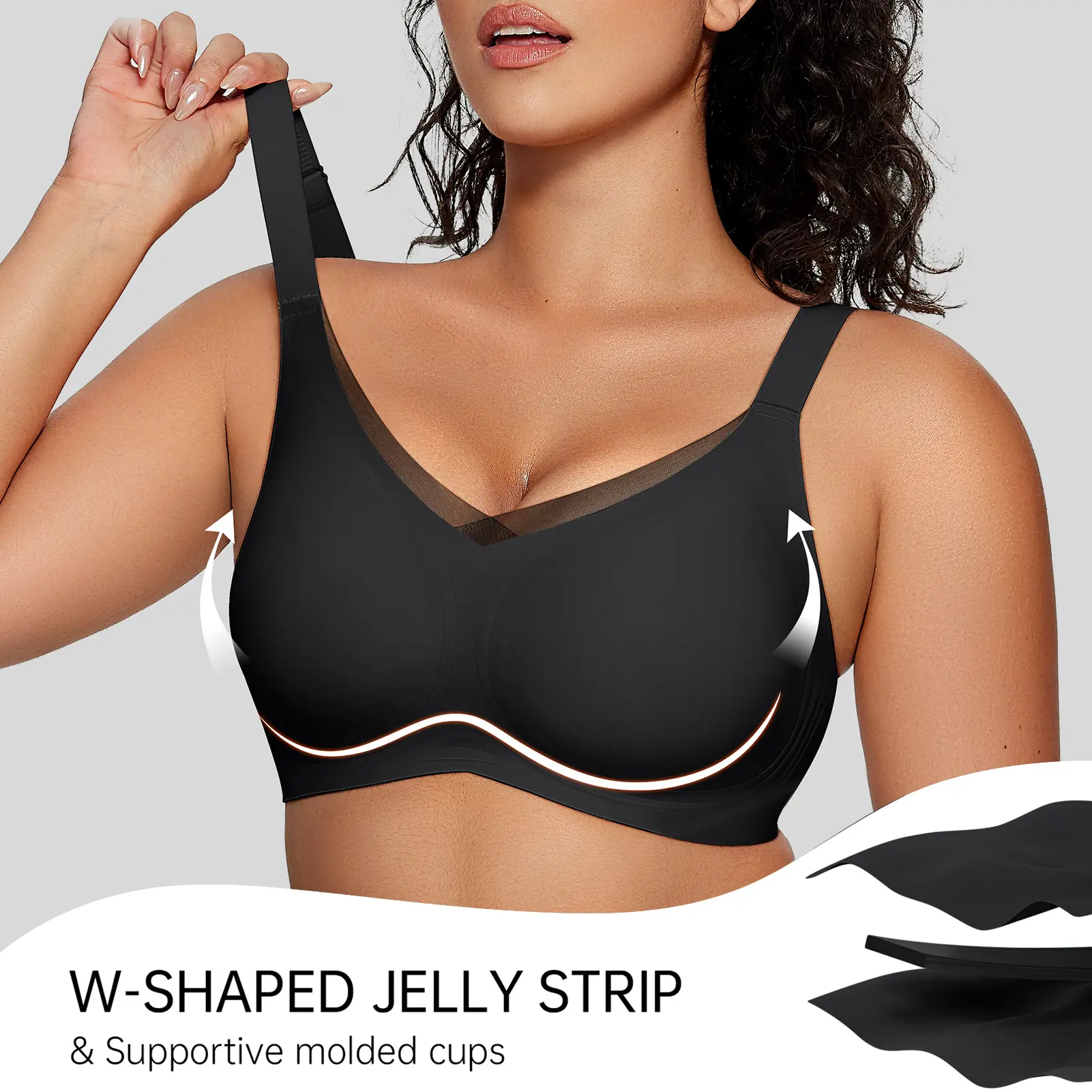·Wireless Bras with Support and Lift - Our wirefree bras feature a W-shaped Jelly Strip and Supportive molded cups around your breasts, giving a nice shape and adequate support for daily life. This comfort bra without underwire means no annoying wire stabbing you in the side, ensuring a buttery soft feeling all day long.