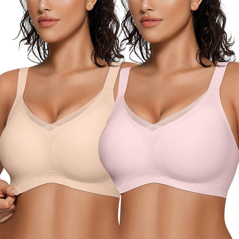 ·Seamless Bras for Women - Made with 55% Nylon + 45% Spandex, these bras offer a soft and smooth texture, exceptional breathability, and an optimal fit. They are designed to easily rest under most fabrics without causing bunching, ensuring a seamless look and feel for everyday wear. It disappears under shirts to leave no visible seams - just a smooth profile.