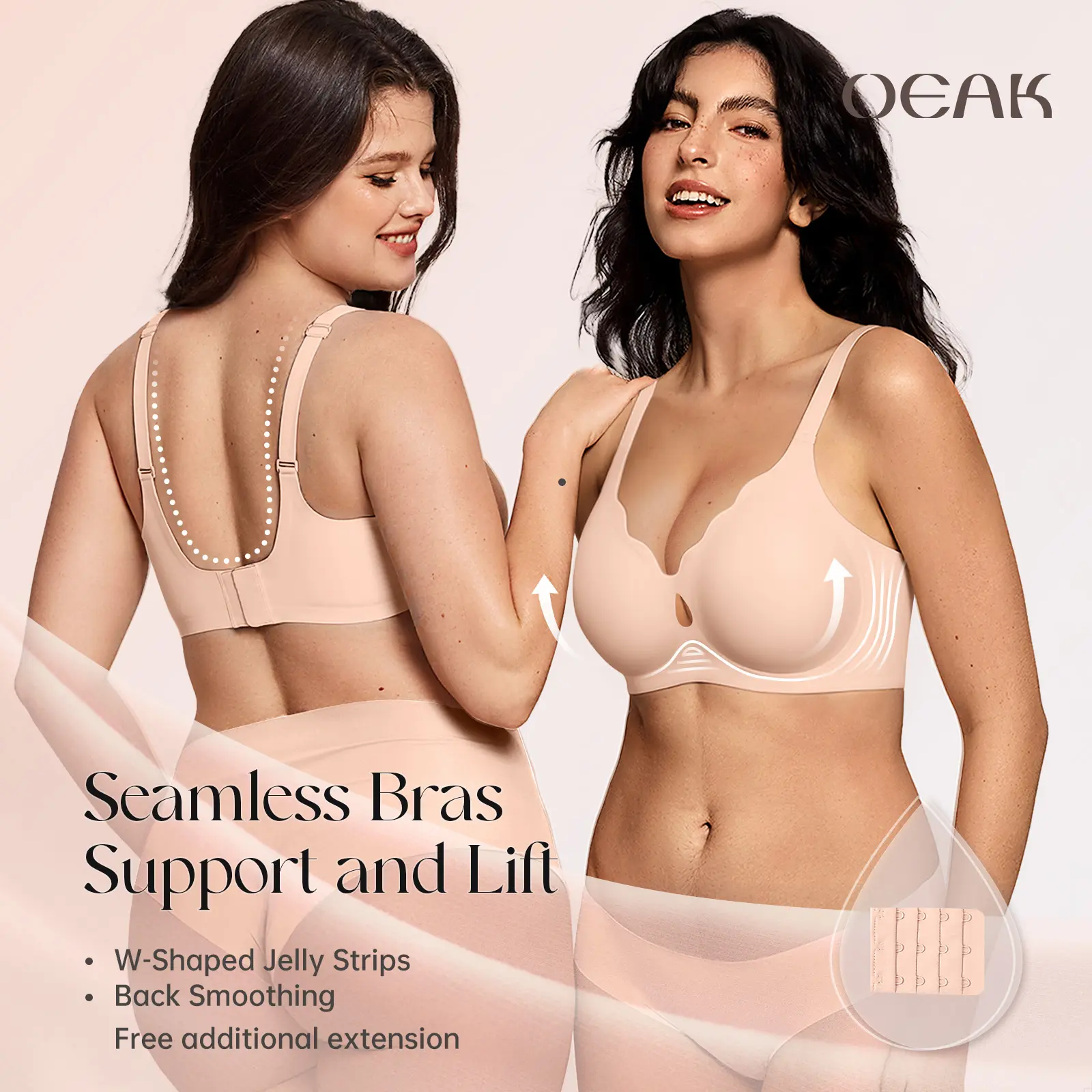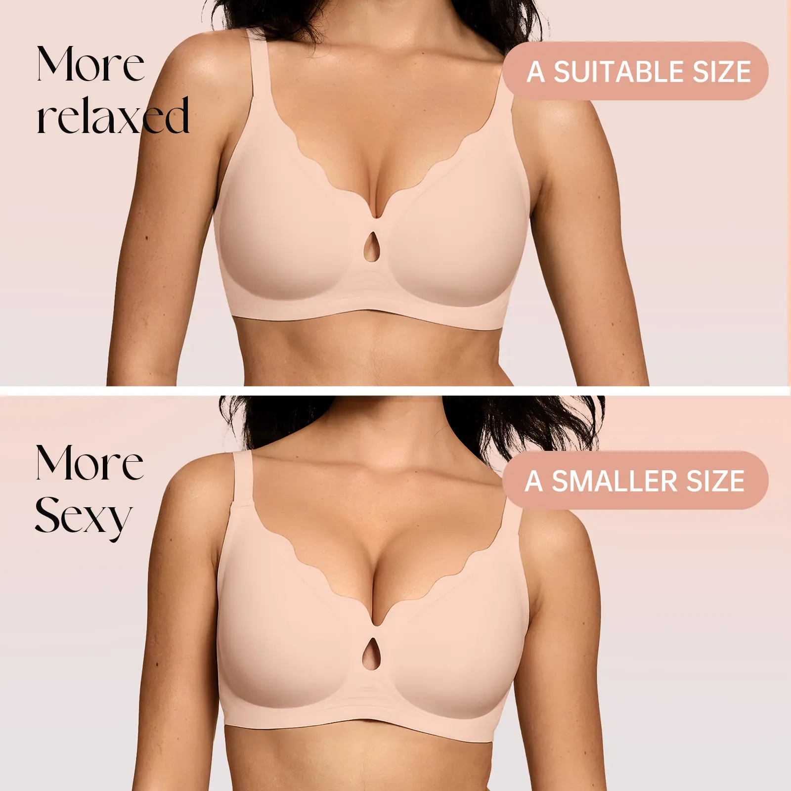 ·W-Shaped Jelly Strip Wireless Bras: Enjoy wire-free comfort and natural lift from our innovative W-shaped jelly strip. This seamless no underwire bra delivers 360° support, prevents cup displacement, and ensures a smooth silhouette under T-shirts, tank tops, dresses, or pajamas. Designed with semi-fixed removable cups, our full support bras adapt to diverse body shapes—offering a naturally rounded, full shape for younger women and ultimate comfort and support for older women