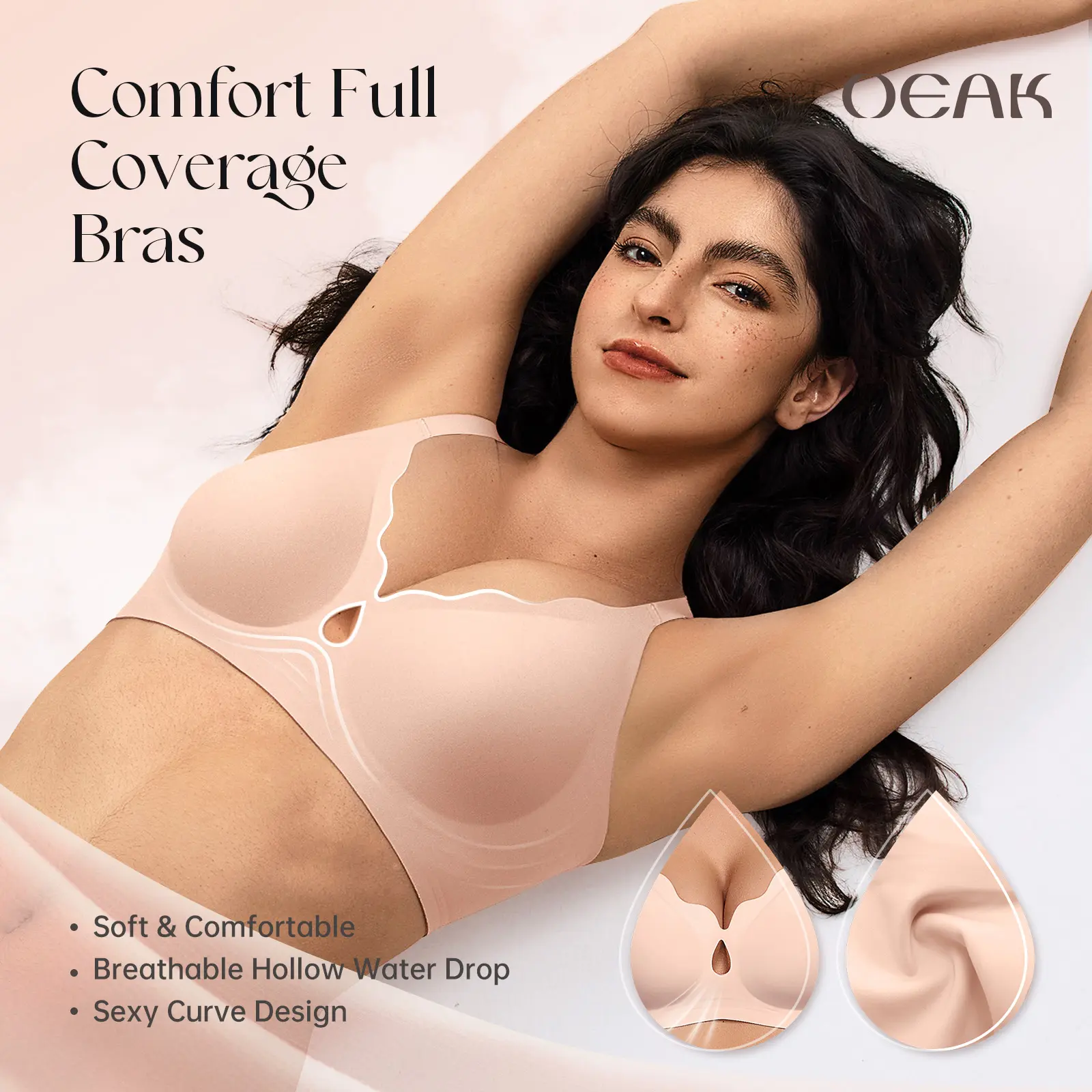 ·Breathable Water Drop Hollow Bras: The elegant water drop design is paired with our womens wireless push up bras, which perfectly blends sexy and breathable. The hollow design enhances airflow to reduce sweat and discomfort while trimming excess fabric for lightweight and comfort, feels like wearing nothing at all. The wireless bra Crafted from buttery soft 55% nylon and 45% spandex—perfect for work, light sports, yoga, or lounging at home