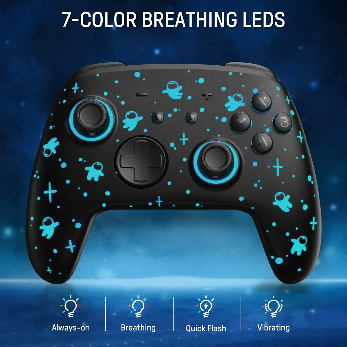 Unveil the magic! Transform your gaming experience with our controller's hidden lights. From elegance black to vibrant patterns in 7 colors, enjoy 4 modes: Breath, Flash, Steady, Dark. Elevate your play in style!