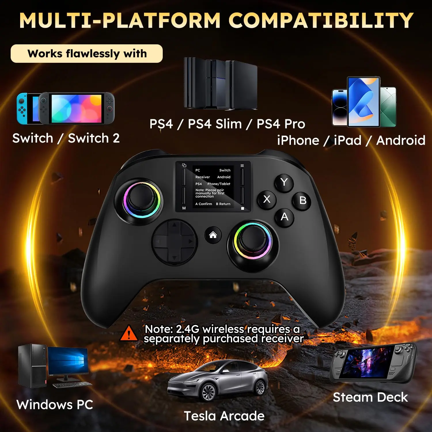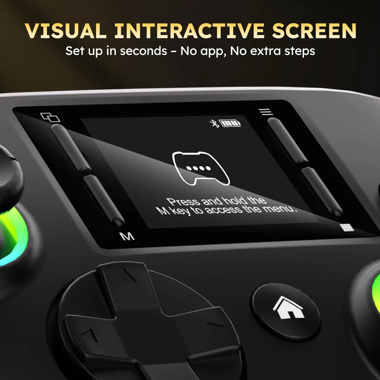 ·【Smart Interactive Display】The wireless gaming controller built-in 1.75-inch LCD display, which shows the displays connection status, battery, gaming sensitivity, RGB lighting and more function. And the joystick dead zone based on the game type directly on the screen. No need to install additional apps or software, you can enjoy your gaming.
