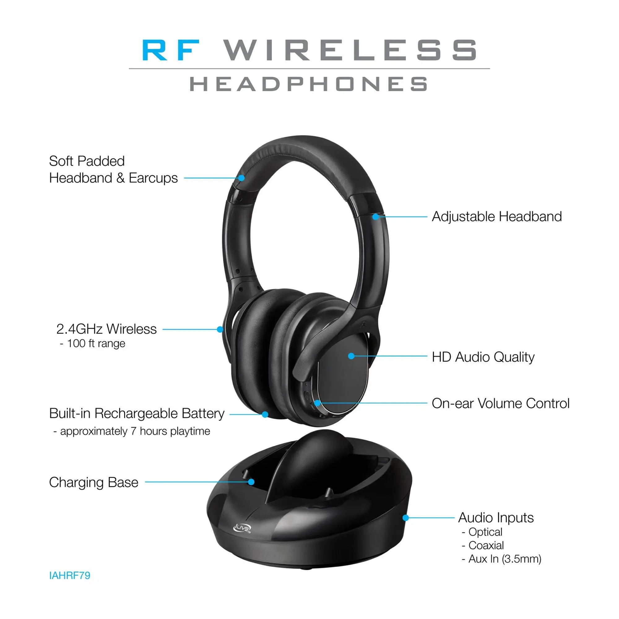 Ever wanted to binge your favorite shows without bothering anyone? These iLive Wireless Radio Frequency Headphones are your new best friend. With a wireless range of up to 100 feet, you can lounge anywhere in the room without missing a beat. The cushioned ear pads and adjustable headband keep you comfy through long viewing sessions, while on-ear volume controls let you tweak sound without fumbling for the remote. The included charging dock makes powering up a breeze, and with up to 7 hours of battery life, you’re set for marathon watching. Plus, versatile connectivity options like optical and RCA adapters mean hooking up to your TV or stereo is hassle-free. Inside the box, you’ll find everything you need: headphones, charging dock, multiple cables, and power adapter. Ready to enjoy your shows on your terms? Grab these headphones and turn your couch into the ultimate entertainment zone!