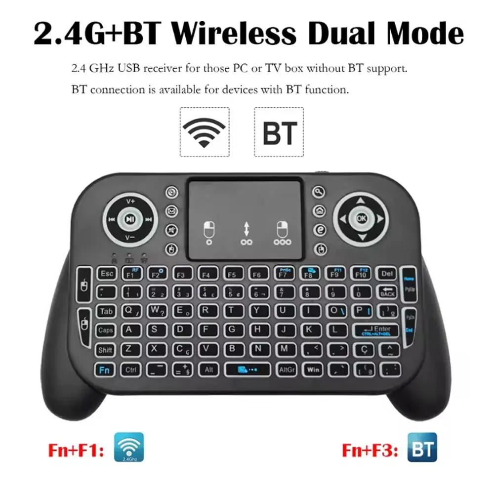 Rechargeable Wireless Keyboard Remote Control, Mini Keyboard Remote Control with Backlight, Dual mode remote, Bluetooth-compatible Keyboard Remote Control for Android TV Box