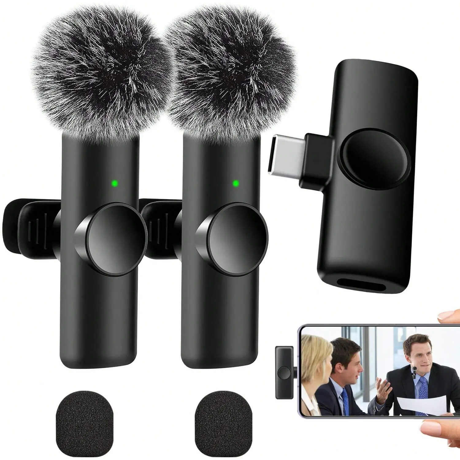 Wireless Lapel Microphone for iOS/Type-C, Plug-And-Play, High-Quality Sound, Smart Noise Reduction, Wireless Mic Receiver, Compatible with Android/iPhone/tablet, USB Rechargeable Mic