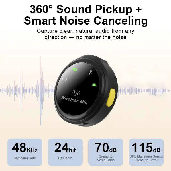 【Ultra-long battery life and transmission distance】:Single-use battery life lasts up to 8–10 hours, and with the charging case, you can confidently record all day long. Featuring the latest 2.4GHz technology, this wireless microphone offers a transmission range of up to 164 feet, giving you complete freedom to move around.