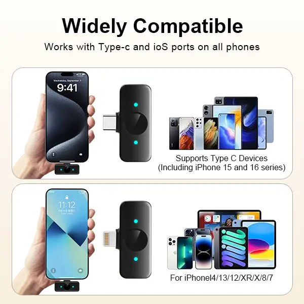 【Multi-device compatibility】: This wireless microphone is equipped with an Apple Type-C adapter, compatible with iPhone, iPad, Android phones, and other Type-C and Lightning interface devices (Note: Please turn on the "OTG" function of the USB C device before pairing; Suitable for video recording, podcasts, vlogs, TikTok, YouTube, Instagram, Facebook, and more.