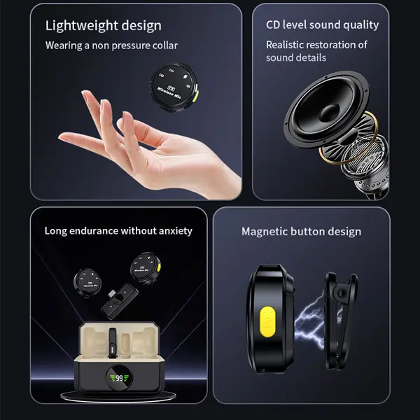 【Warmly tips】 Come with 2 x wireless transmitters, 2 x wireless receiver, 2 x mic clips, 1 x charging cable, and 1 x user manual. We provide a one-year warranty. If you have any questions, please feel free to contact us.