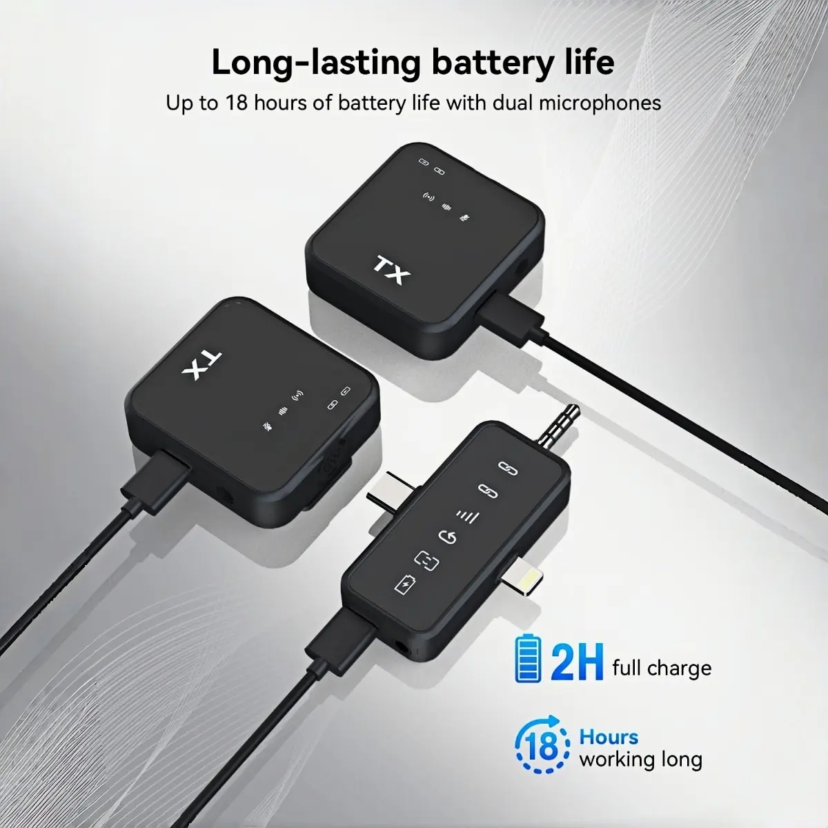 ·Long Battery Life – Provides up to 18 hours of use when using two microphones. A single microphone supports up to 9 hours of operation per full charge.