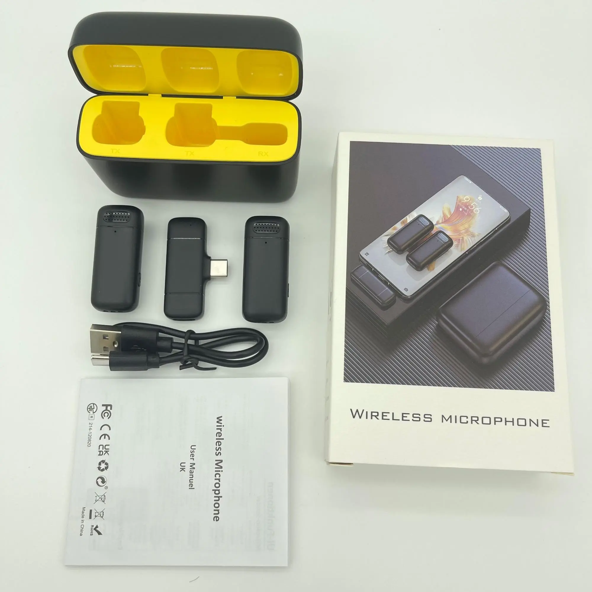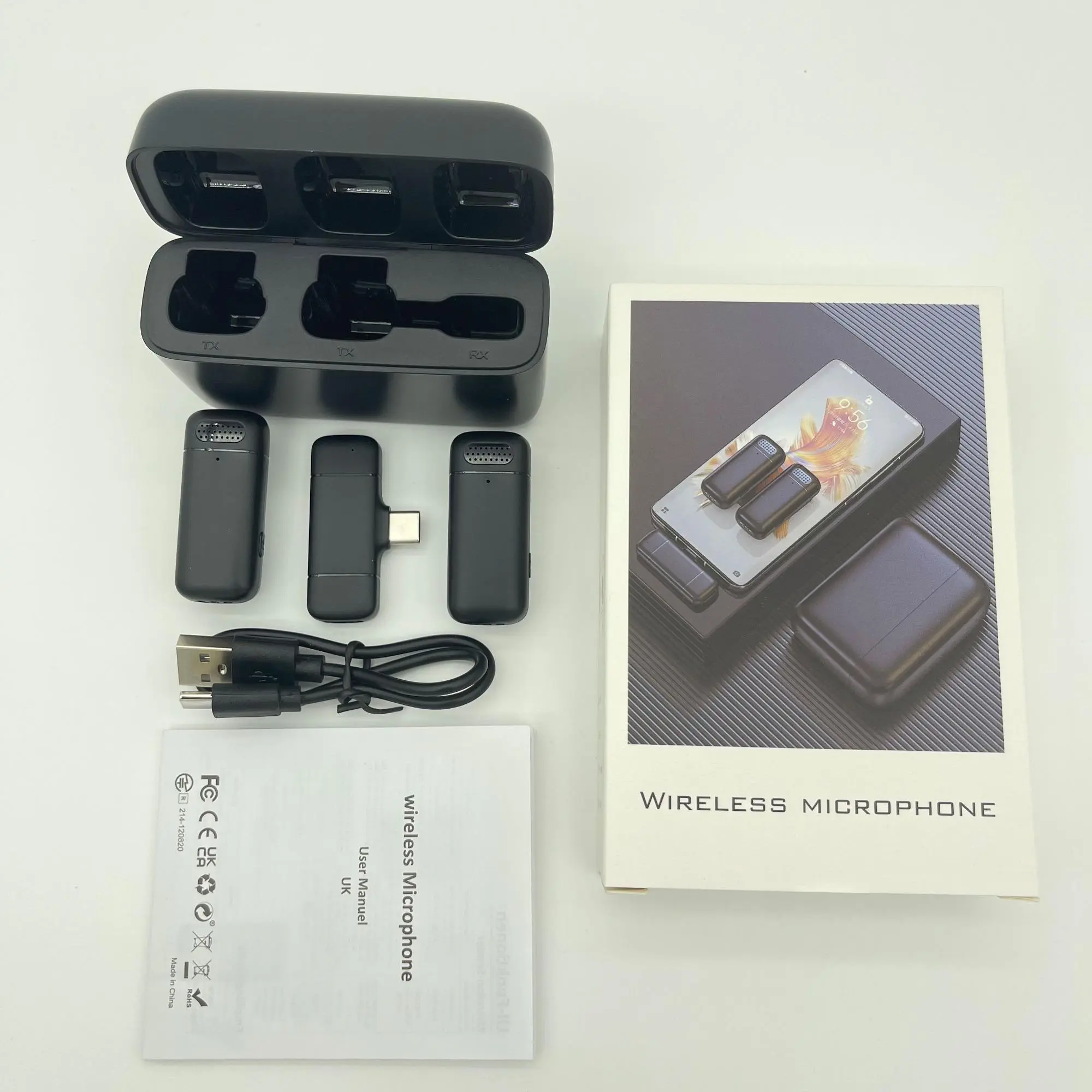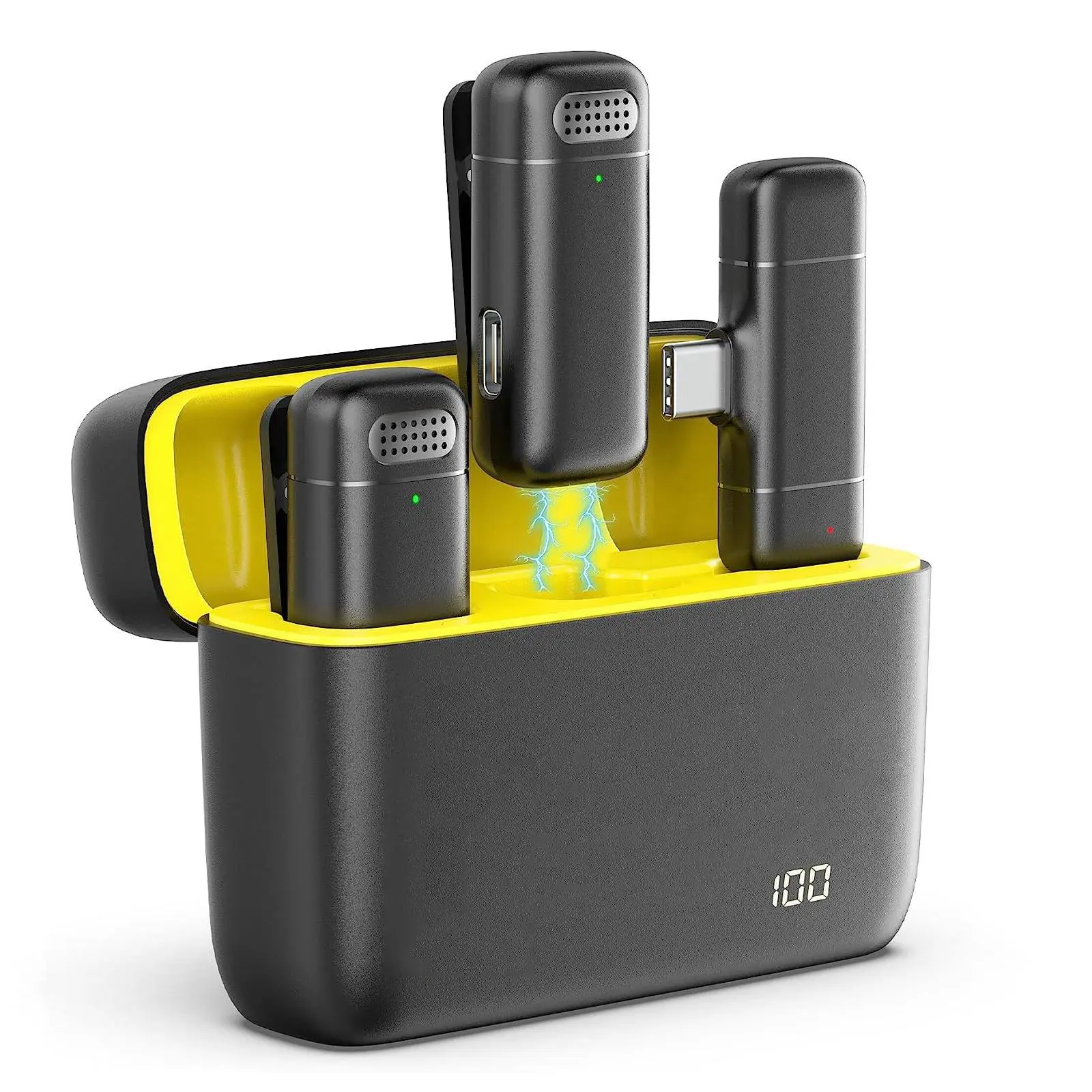 Black, 2 Mic with Type-C Jack for Android