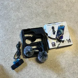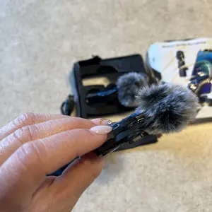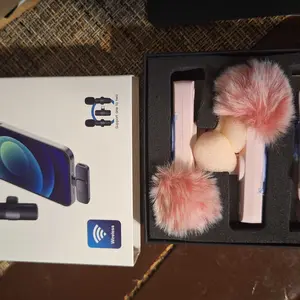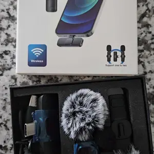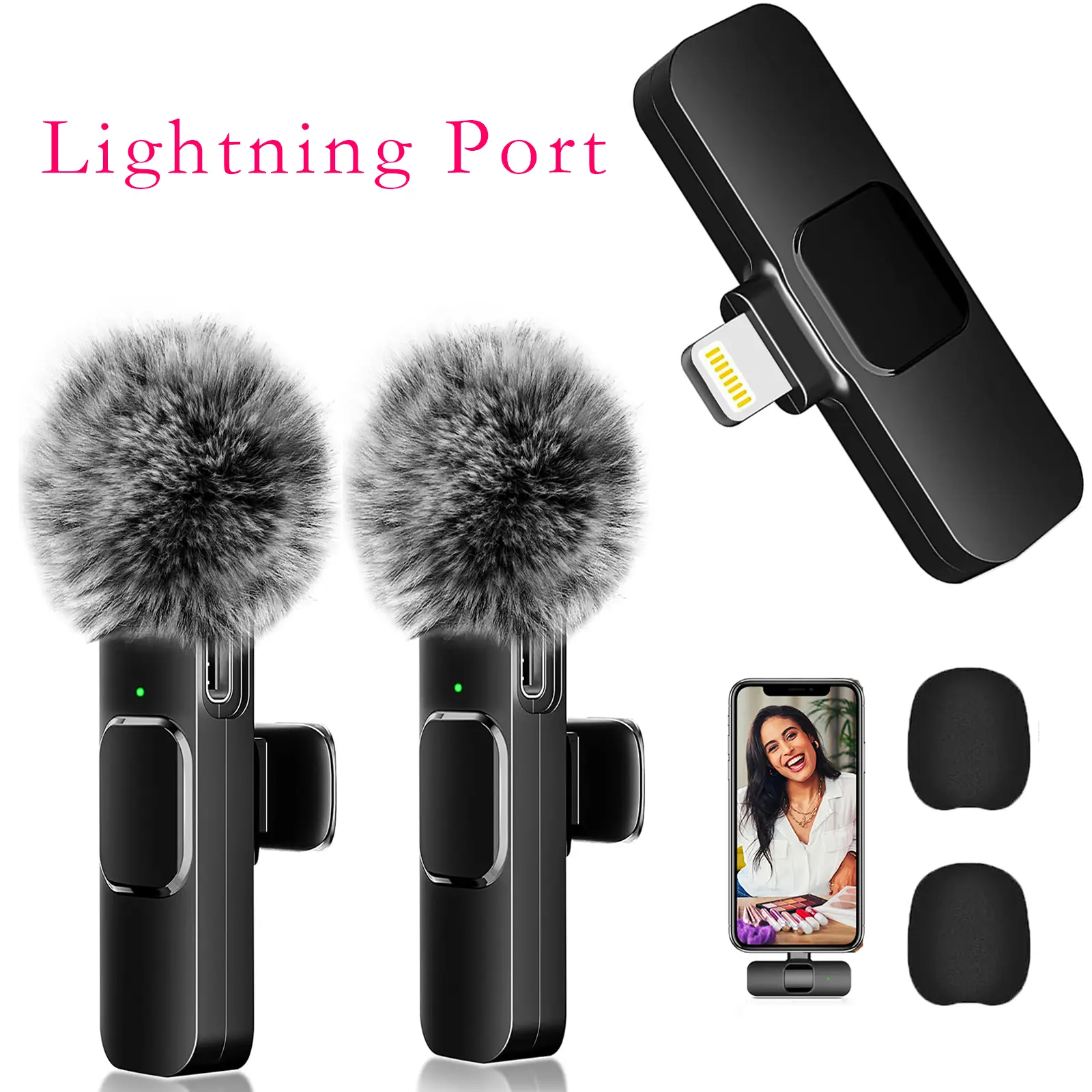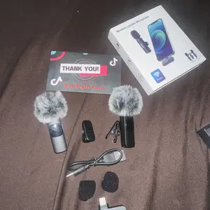 Ever struggled with tangled wires or noisy backgrounds ruining your videos? Our 2-piece wireless lavalier microphone set is here to save your day! Designed for iPhones and iPads, these mics deliver crystal-clear sound with professional-grade noise reduction, so your voice shines even in noisy spots. Setup is a breeze—just plug the receiver into your device's Lightning port, turn on the mics, and they pair automatically. No apps or Bluetooth needed! With up to 65 feet of wireless range and 6 hours of rechargeable battery life, you can roam freely while recording interviews, podcasts, vlogs, or TikTok videos. Plus, the included furry windscreen cuts down wind noise for outdoor shoots, keeping your audio crisp and professional. In the box, you get two wireless lavalier mics, a receiver, and windscreen covers. Ready to upgrade your audio game? Clip on, go wireless, and capture your best sound yet!