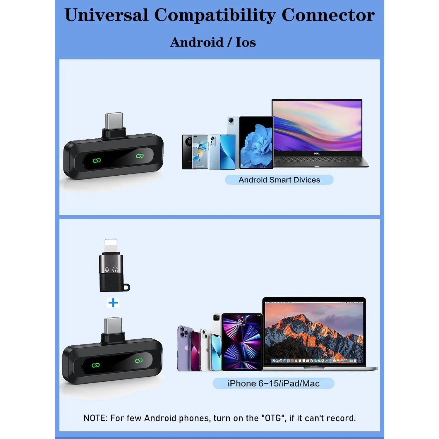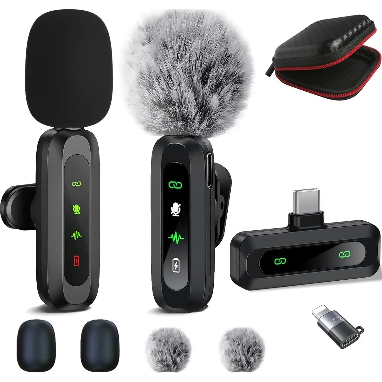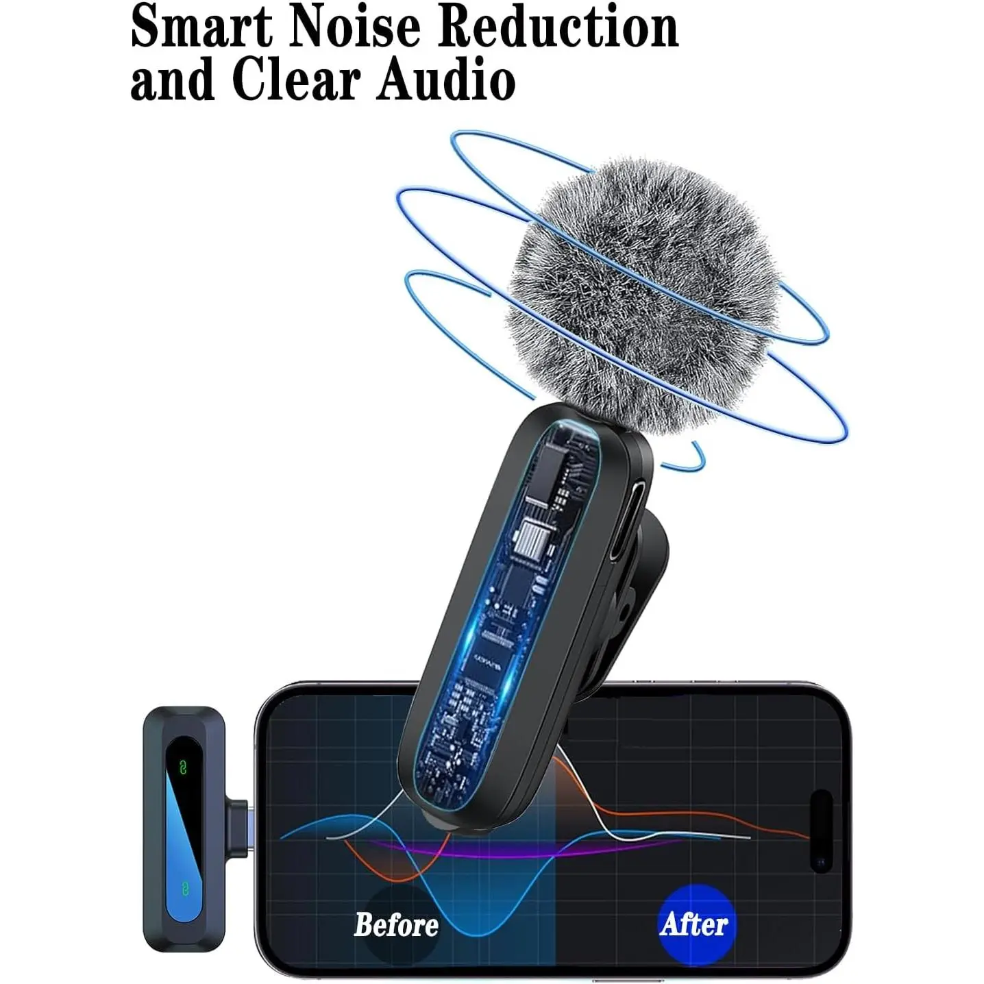 Wireless Lavalier Microphone for iPhone Android Plug-Play,2 Pack Mini Microphone Professional Noise Reduction Recording Clip Mic for Creator Interview YouTube Interview Vlog Creator