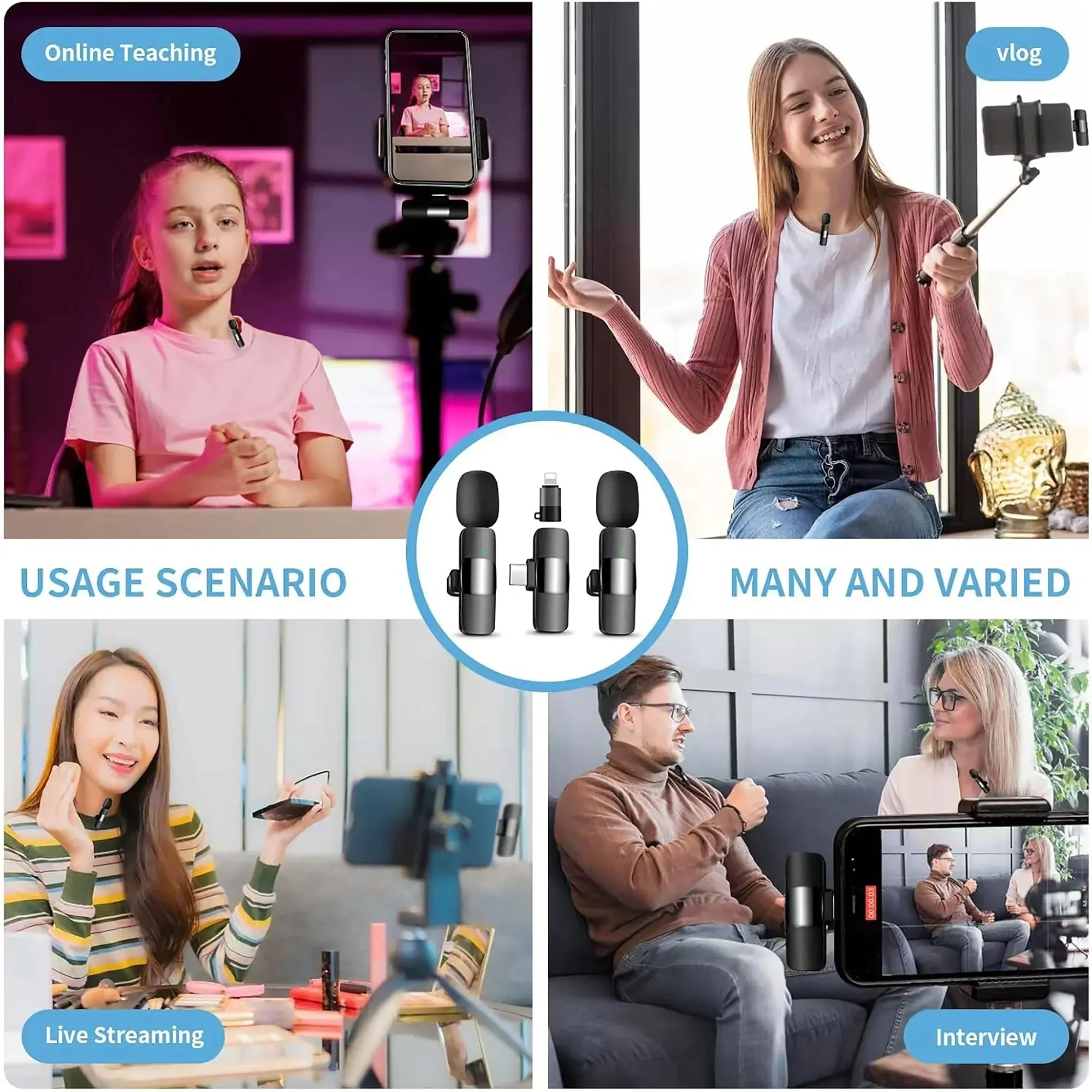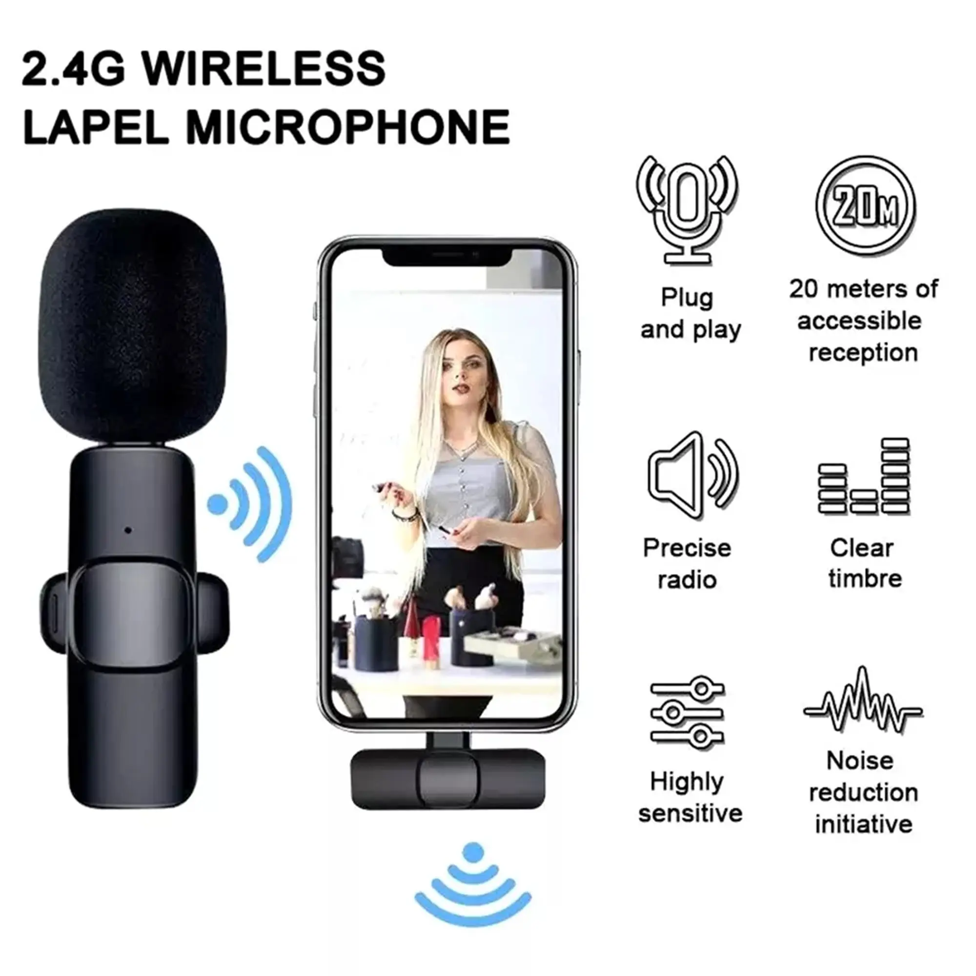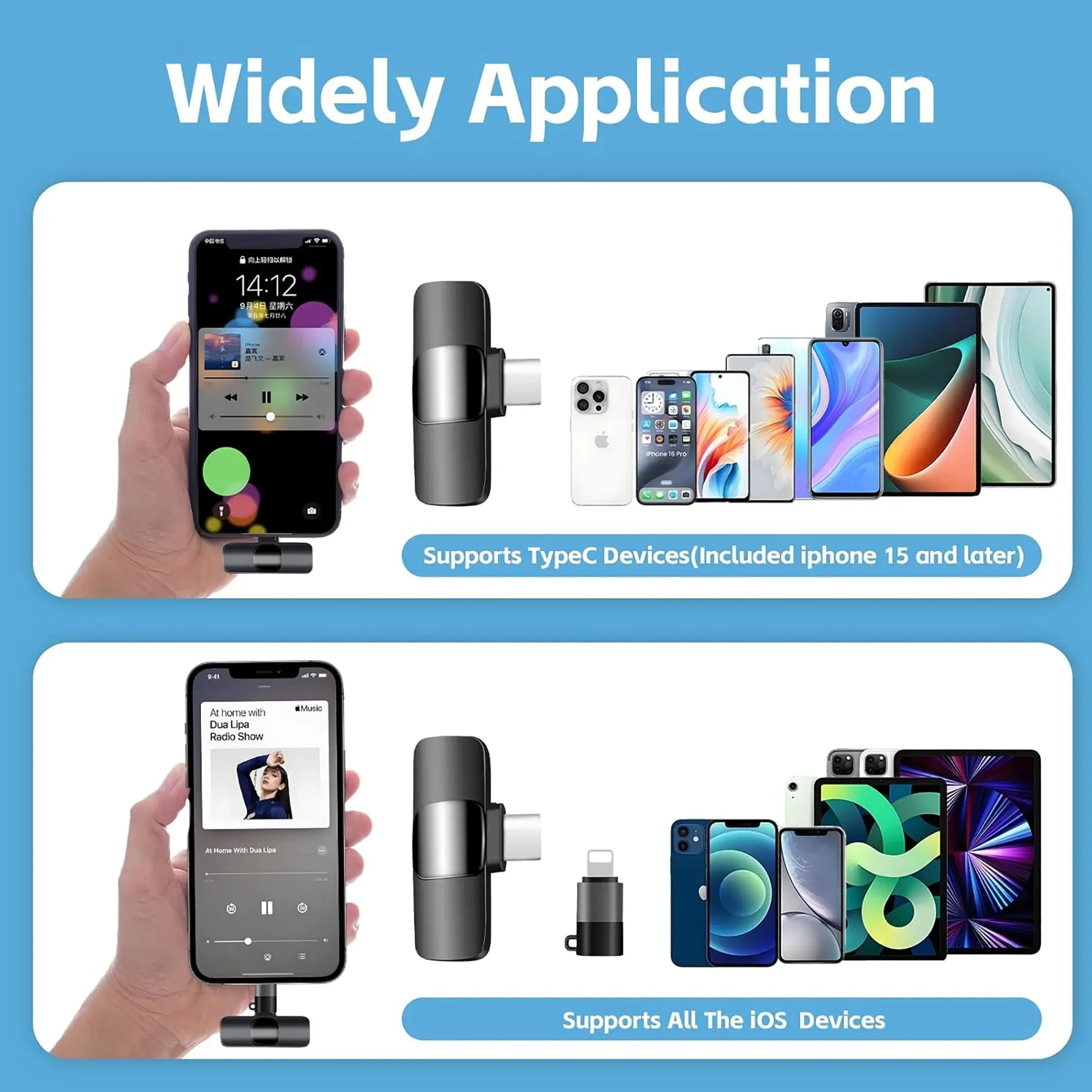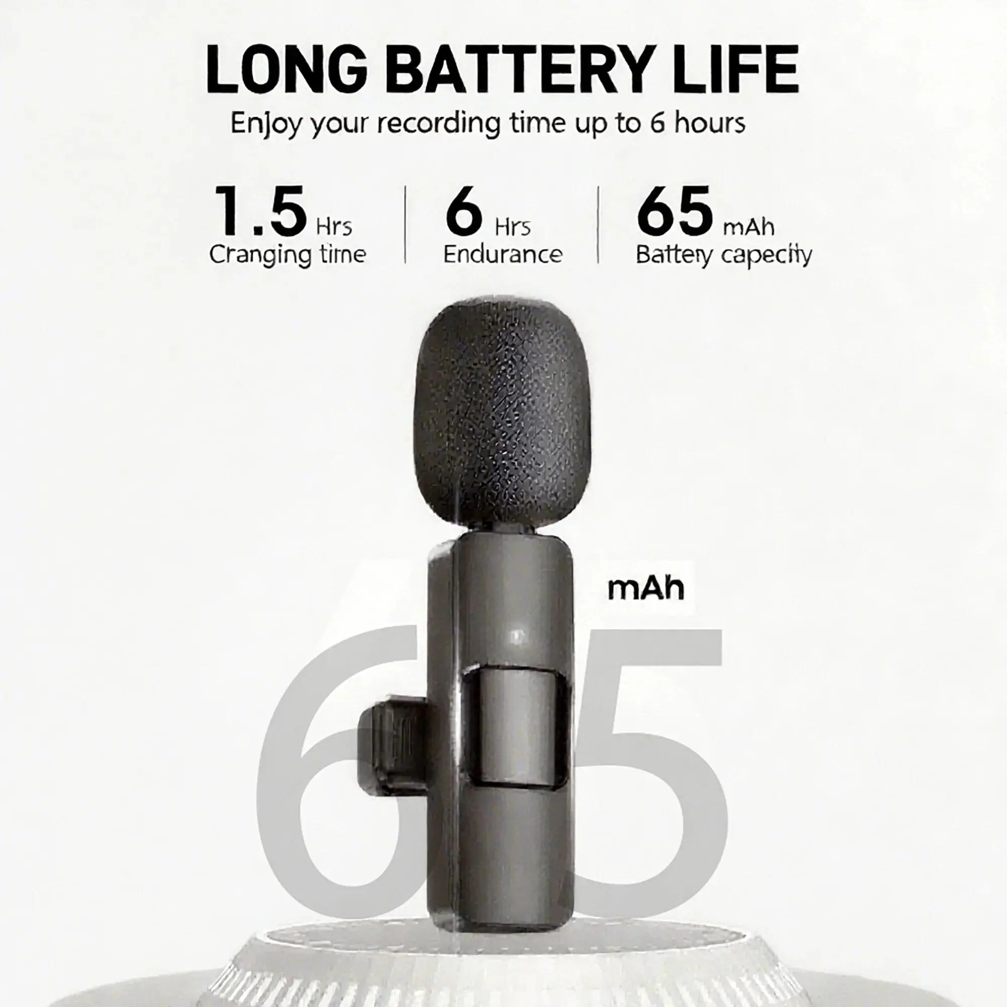 The Mini Mic Pro is a versatile wireless microphone that delivers professional-grade audio recording for your iPhone, iPad, Android, and other devices. With its compact, portable design and discreet clip-on, this lavalier microphone is perfect for creating content on the go, whether you're vlogging, live streaming, or recording interviews, podcasts, or ASMR. Featuring noise-canceling technology and omnidirectional sound reception, the Mini Mic Pro ensures crystal-clear audio in any environment, whilenits rechargeable transmitter and receiver provide up to 6 hours of continuous use. Seamlessly compatible with a variety of devices, this wireless microphone is the ultimate tool for creators seeking a reliable, high-quality audio solution.