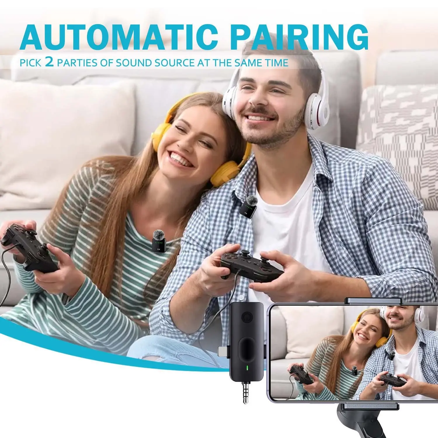 Wireless Lavalier Microphone for iPhone iPad Android, 3-In-1 Plug-Play Mic, 164ft Transmission Range, Live Stream, Lapel Microphone, Live Streaming Mic