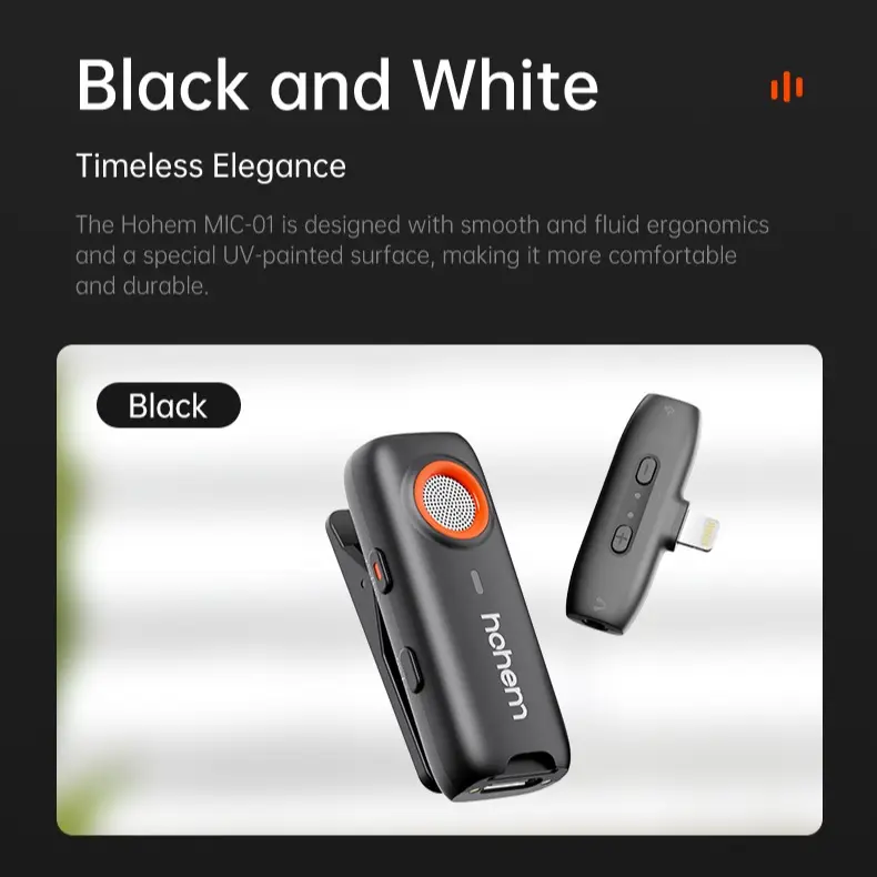 Ever struggled with poor audio ruining your videos or interviews? The hohem MIC-01 Wireless Lavalier Microphone is here to save the day with crystal-clear sound and hassle-free wireless freedom. Designed for creators on the go, this mic features DSP noise cancellation to cut out wind and background noise, so your voice shines through every time. With up to 20 hours of battery life, you can record all day without interruptions. Its 360° omnidirectional pickup means no matter how you move, your audio stays consistent and clear. Plug-and-play setup makes it a breeze to connect to Android phones, PCs, cameras, and iPhones (Lightning version). Plus, real-time monitoring and reverb mode let you tweak your sound live for professional results. The lightweight design means you barely notice it while filming, and the built-in TF card slot offers backup recording (card not included). Whether you’re vlogging, interviewing, or capturing content, the MIC-01 pairs perfectly with hohem stabilizers like the iSteady M6 and MT2 for a pro-level setup. Ready to upgrade your audio game? Grab the hohem MIC-01 and make every word count!