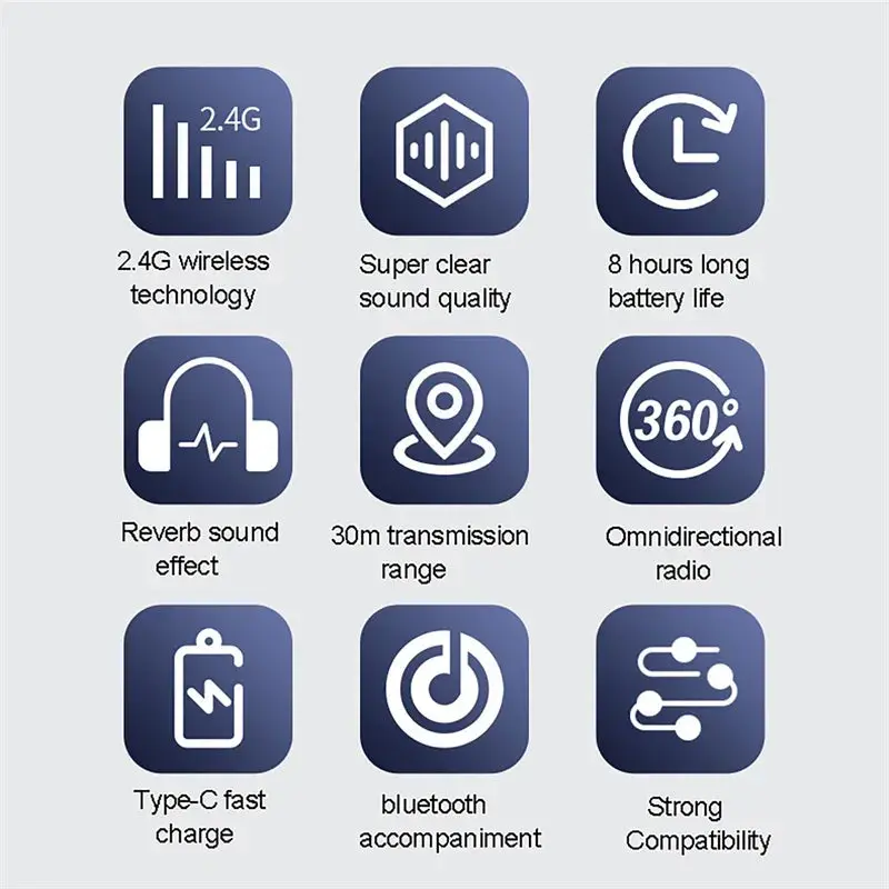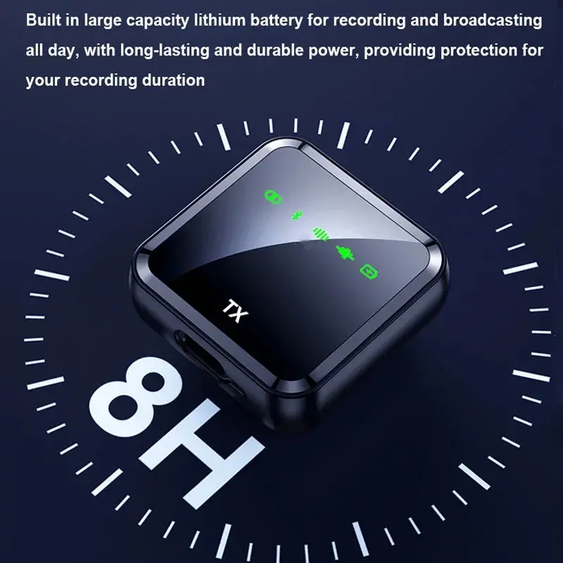 * Built-in large-capacity lithium battery, 8H long battery life, can record and broadcast for a whole day, and the power is durable to protect your recording market.