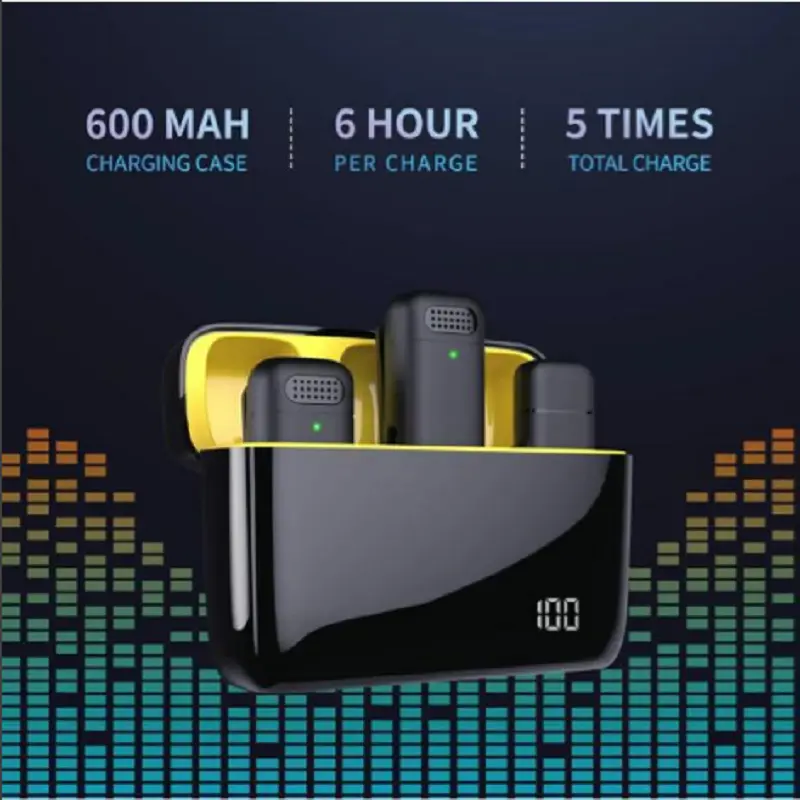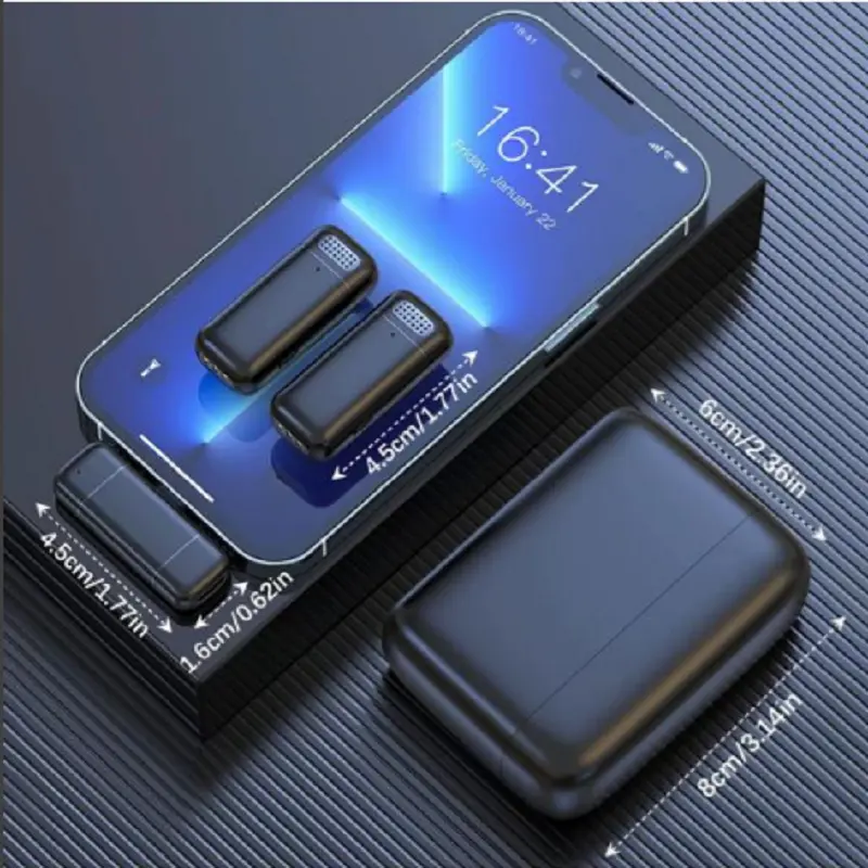 [Battery life] The charging box has a capacity of 300mAh, which can charge the microphone about 5 times. A single charge can generate 6 hours to 10 hours of use time, supporting 2-3 days of continuous use. When recording videos, you no longer need to worry about running out of power. In addition, the mini design is more convenient to carry and pocket-saving, which is very suitable for outdoor use.