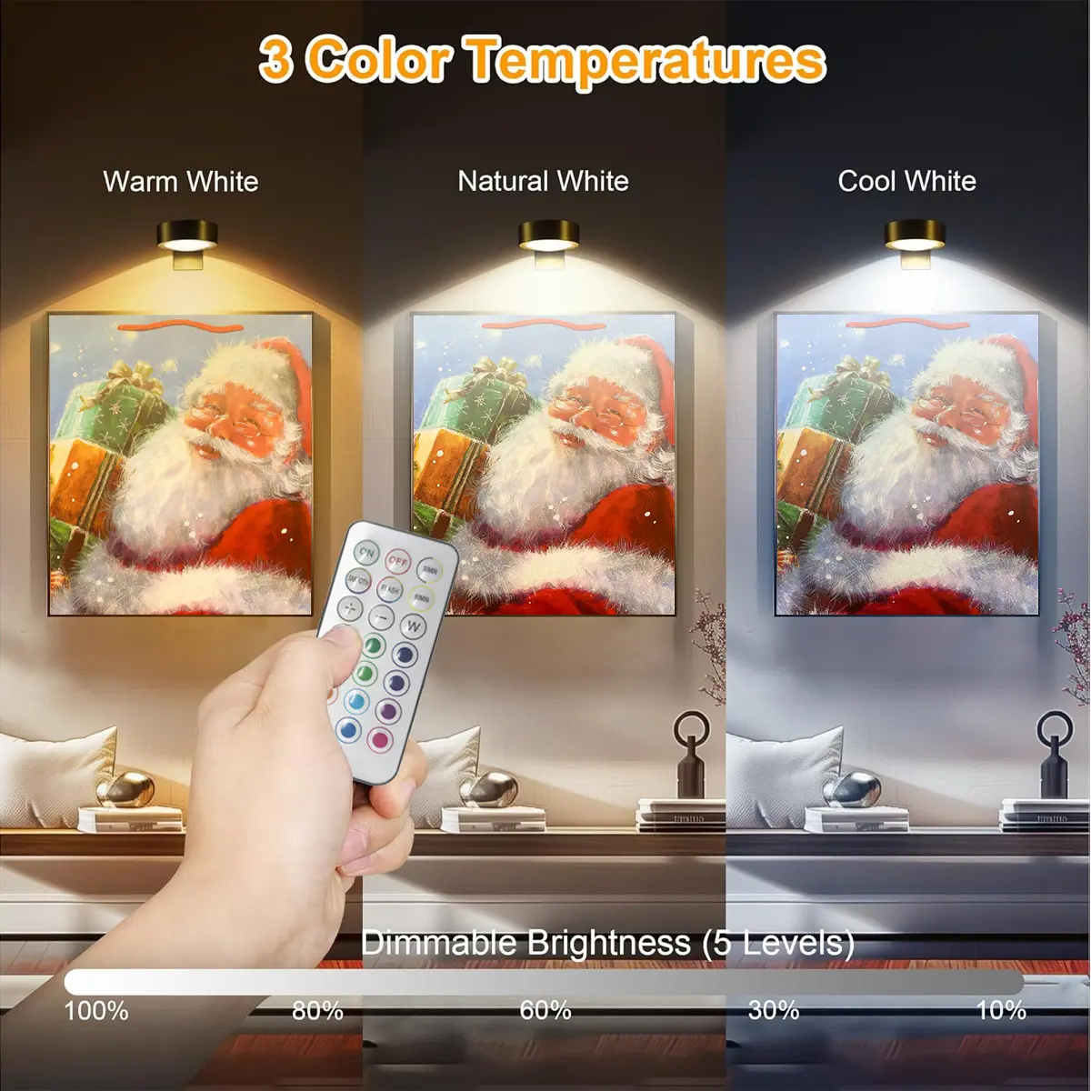 3-piece wireless battery powered painting lamp: Each painting lamp can reach a maximum brightness of 100 lumens and is equipped with a high transmittance lampshade, resulting in a brighter overall effect.