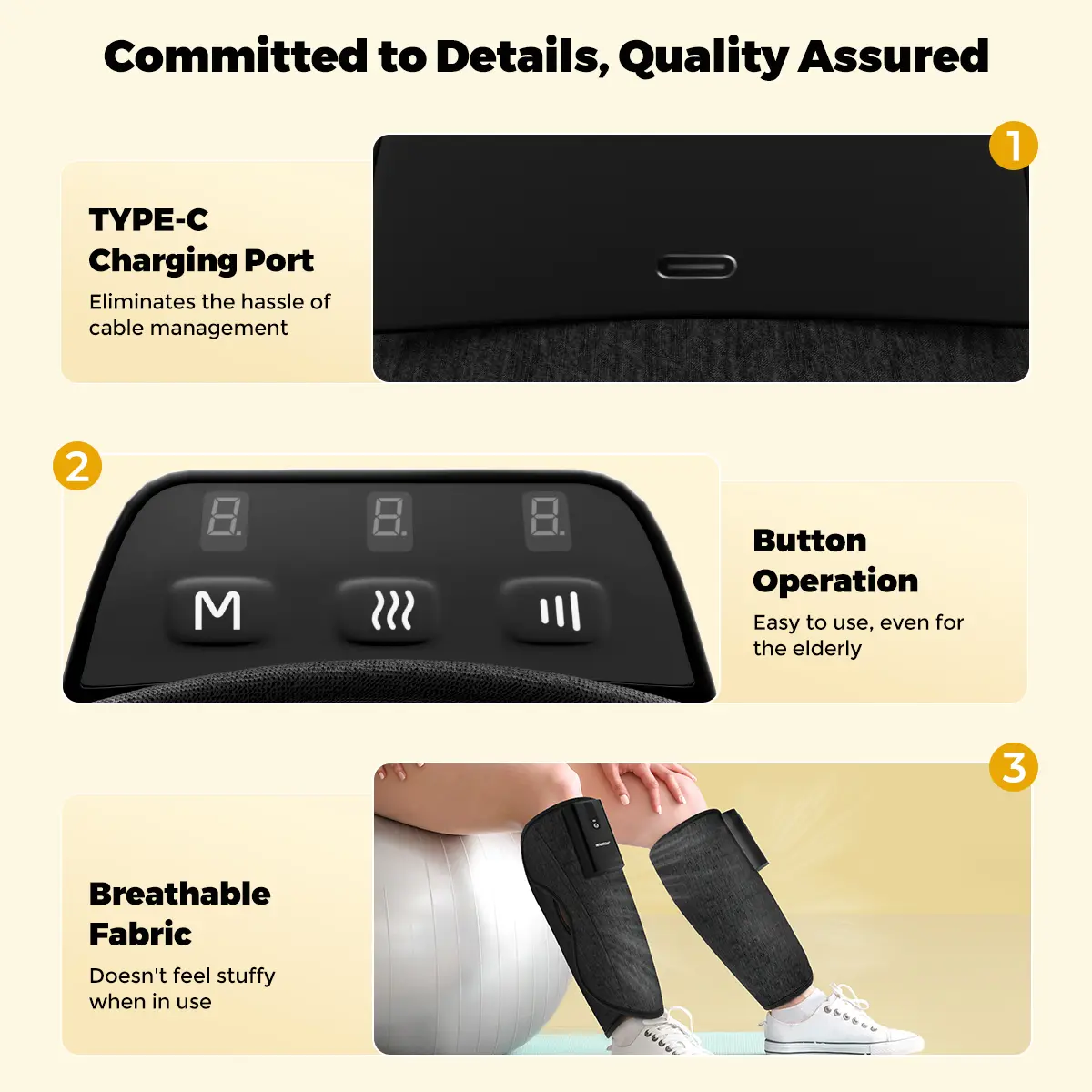 I really like the design of this velcro. Due to the long-term discomfort in my calves, I have tried many different types of leg massage devices. However, none of them could wrap around my calves well and provide a thorough massage. This time, it gave me a completely different experience.