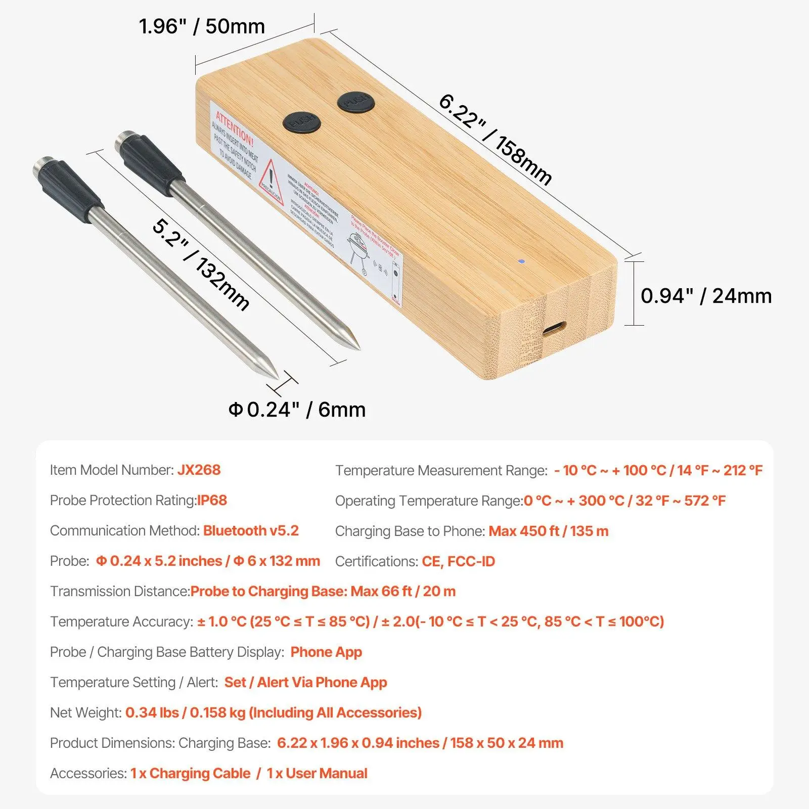 ·Double the Efficiency: This smart meat thermometer tracks two dishes simultaneously with two probes! No more waiting for one meal to finish before starting another. Faster and tastier - who knew a thermometer could save time in the kitchen?