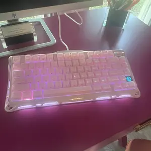 This wireless keyboard redefines gaming aesthetics with its aluminum alloy exoskeleton in Sakura Pink. The 75% layout (79 keys) offers symmetrical stability with flowing curves, perfectly complementing any desk setup. Dual-layer PBT keycaps cater to pink enthusiasts and battlestation creators alike.