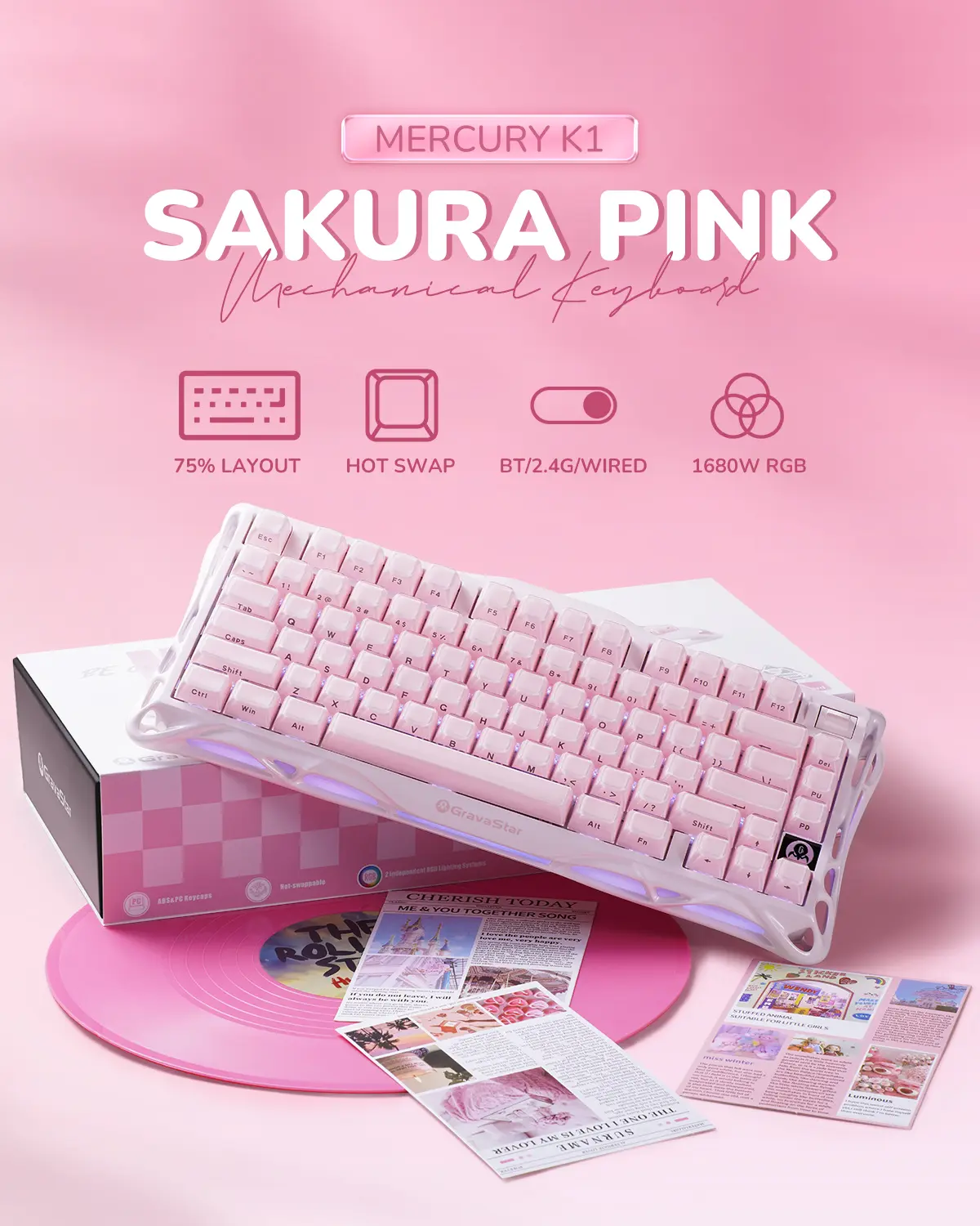 Elevate your setup with a keyboard that combines art and engineering. Ideal for tech enthusiasts, the Mercury K1 comes in sakura-blossom packaging, making it a standout gift for birthdays, holidays, or self-rewards.