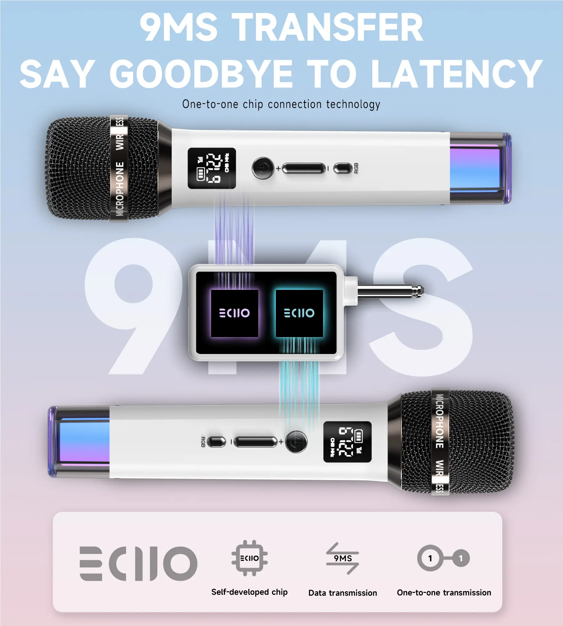 【2025 Upgraded Connection Technology】The wireless microphones use two intelligent high-speed processing chips to truly achieve one-to-one signal processing reception, making signal reception more stable and faster. Breaking the traditional 2.4G Hz frequency transmission speed, breaking through to the lowest 9ms delay. Let you have the ultimate singing experience.