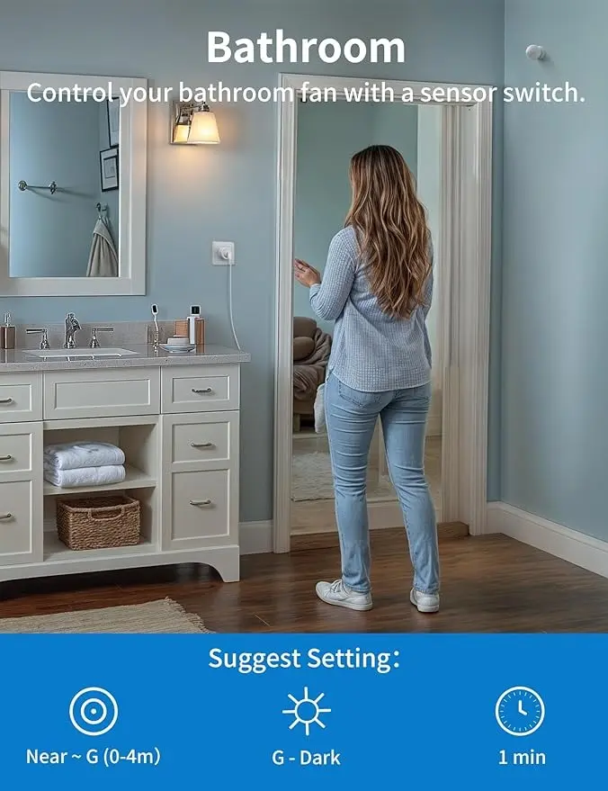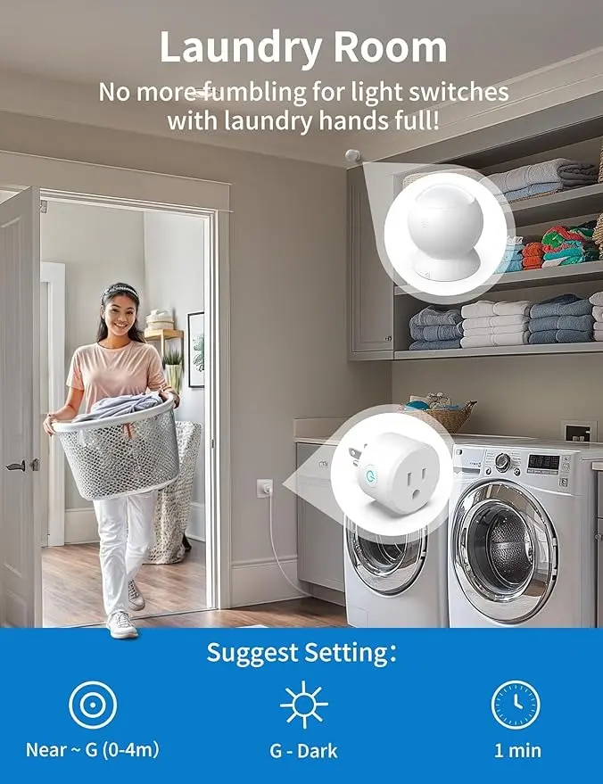 6. Convenience Meets Energy Efficiency: This motion sensor outlet kit, featuring 3 adjustable light sensor modes and 3 sensitivity range settings, is perfect for hands-free control of lighting or fans in spaces like bathrooms, basements, kitchens, laundry rooms, pantries, garages, and hallways. .