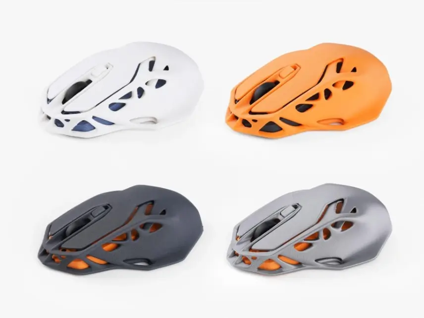 This 3D-printed mouse has a futuristic hollow shell design, revealing its internal structure. This generative design shell structure is possible only with 3D printing. Our industrial designer fully utilized the advantages of a 3D printed structure to present you with this magnificently artful mouse.