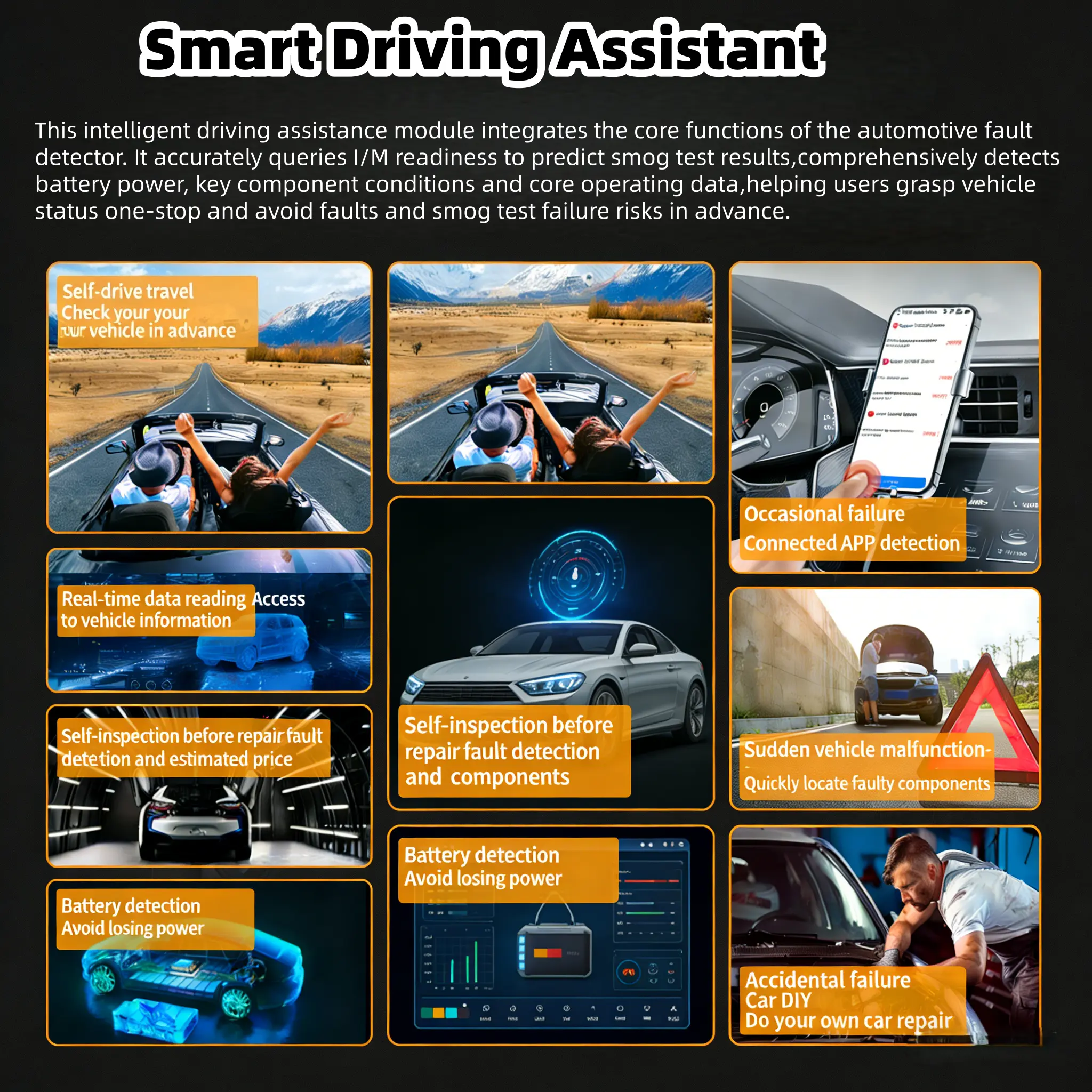 ·① All-Round Diagnostic Performance | Professional OBD2 Scanner Diagnostic Tool This car diagnostic scanner can read & clear 96,000+ DTCs, supporting engine system check, real-time data stream, VIN reading, freeze frame analysis, battery voltage monitoring, I/M readiness, onboard monitoring, component testing and sensor data analysis. As a top-tier scan tool, it monitors vehicle status in real time, cutting unnecessary repair costs and downtime for all vehicle owners.