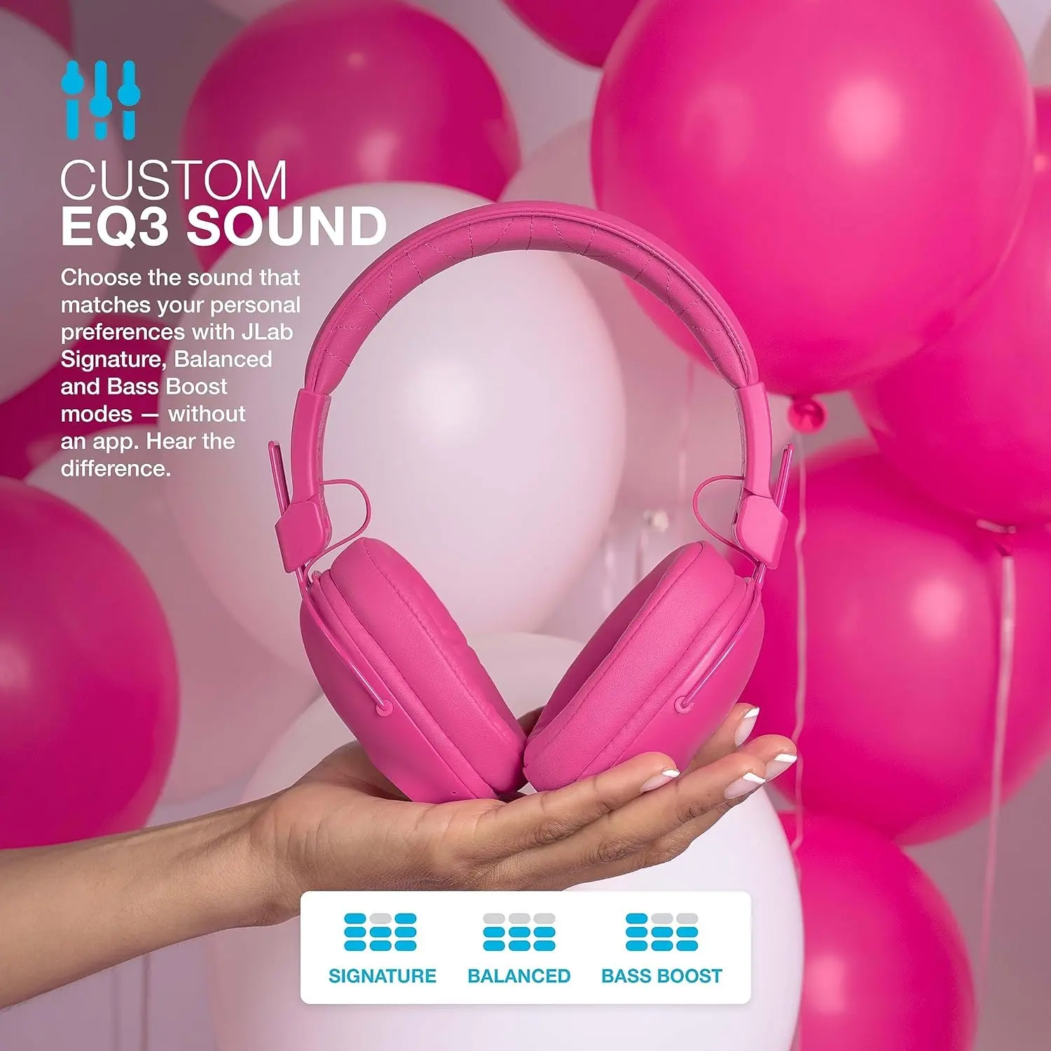 Wireless over-ear headphones with 50+ hours playtime, ergonomic fit, and EQ3 Sound.