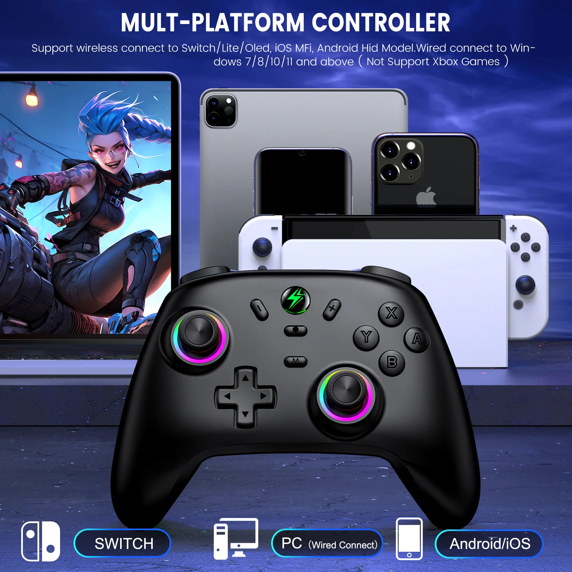 【WIDELY COMPATIBLE SWITCH REMOTE】 The switch pro controller is compatible with Nintendo Switch Pro/Lite/OLED/iOS/Android/Windows PC. Nintendo switch pro controller supports all games & game platforms that support HID mode on Android devices, and games on iOS that support MFI protocol (require iOS 13.0 and above). Pro controller switch also supports all games and Steam that support X-Input mode on Windows PC (require Windows 7 and above). An ideal switch gamepad for family and party