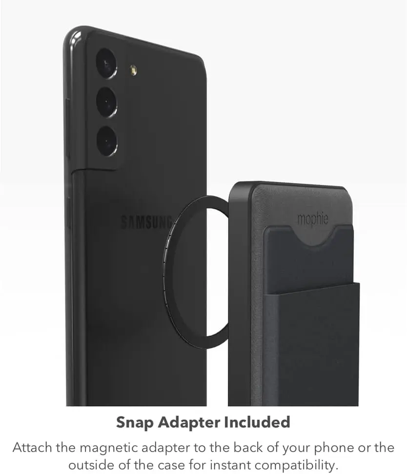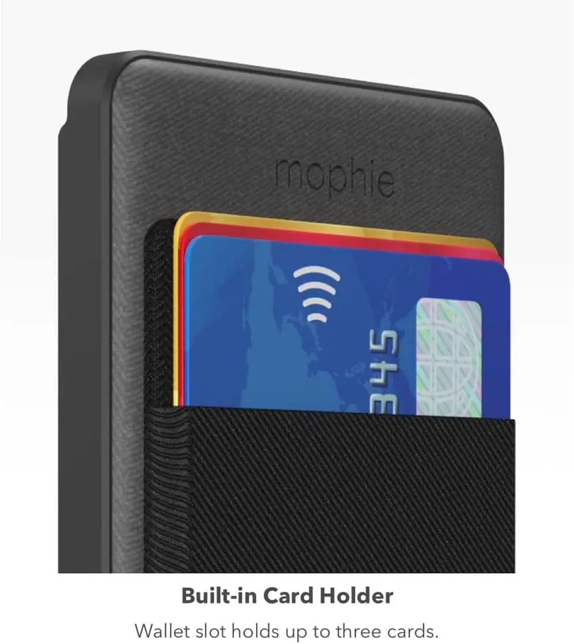 Stay powered up on-the-go with the Mophie Snap+ Juice Pack Mini with Wallet. This wireless portable charger features a 5000mAh internal battery, perfect for keeping your devices charged throughout the day.