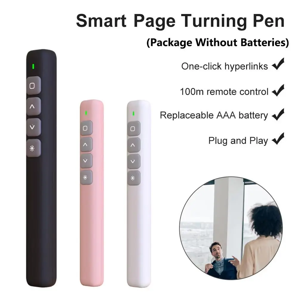 Wireless Presentation Pen, 1 Count USB RF Remote Control Flip Presenter Pointer, PPT Slide Advancer Pen, Office Presentation Supplies