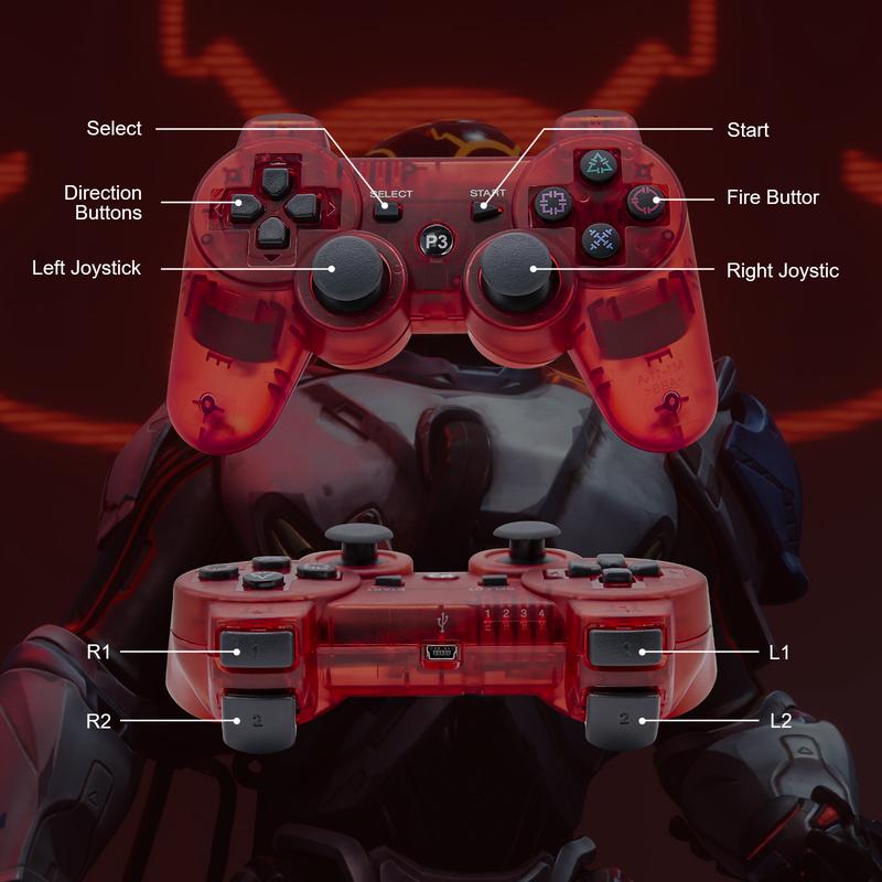 ·This ps3 controller using high-quality rocker and buttons, sensitive and not drifting. The connection method adopts bluetooth wireless connection or USB wired connection, and the connection is stable without delay. The controller has a built-in 6-axis sensor and dual vibration motors, which can accurately perceive the motion information of the controller and provide good game vibration feedback. Built-in 600mAh rechargeable battery, charging for 2-3 hours can provide 8-12 hours of game time.