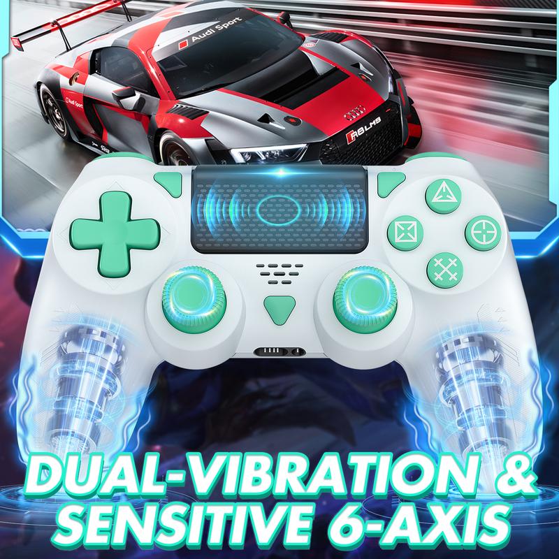 Ever get tired of tangled wires or cramped thumbs during long gaming sessions? These wireless controllers are here to level up your PS4, Slim, Pro, or PC gameplay with comfort and style. Each controller features dual vibration and a 6-axis motion sensor, making your moves feel ultra-responsive and immersive. The clickable multi-touch pad and built-in speaker add extra control and sound effects right at your fingertips. Plus, the turbo function and one-button forwarding give you an edge in fast-paced games. Rechargeable 700mAh batteries keep you playing for 12 to 15 hours after just a 2.5-hour charge, and the 3.5mm headphone jack lets you plug in your favorite headset for private gaming sessions. With a wireless range of 32 feet, you can kick back on the couch without losing connection. The package includes two premium ABS plastic controllers in a sleek black and white design, ready to plug and play. Ready to ditch the wires and grab your next win? These controllers are your perfect gaming sidekicks!