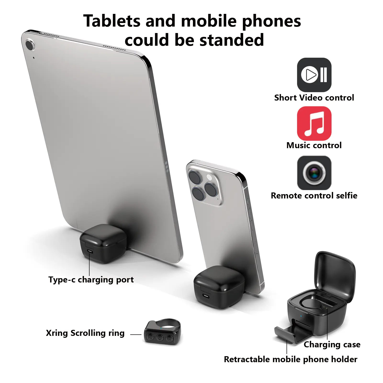 Ever wish you could control your phone without fumbling for it? This wireless remote control ring is your new selfie and video buddy. Whether you’re capturing the perfect shot, scrolling through apps, or turning pages hands-free, this ring has you covered. It connects via Bluetooth 5.0 to Android phones and iOS devices (just enable Assistive Touch on iPhones and iPads). The ring’s miniature design fits snugly on your finger, and it includes a retractable stand so you can prop up your device comfortably. With a fast-charging case, you get up to 30 days of use—perfect for long trips or busy days. Control videos, music, photos, and calls with simple clicks, double clicks, and long presses. Plus, it’s lightweight and portable, making it a must-have selfie accessory for on-the-go fun. Inside the box, you’ll find the remote control ring, a charging case with Type-C cable, and a user guide. Ready to upgrade your mobile control game? Grab this handy ring and snap, scroll, and swipe like a pro!
