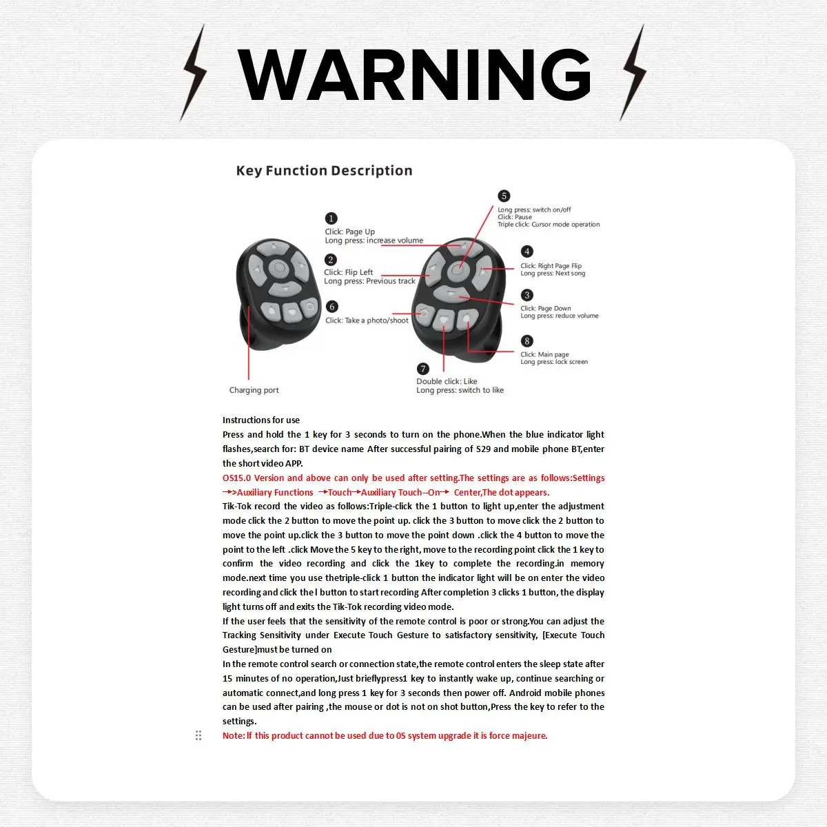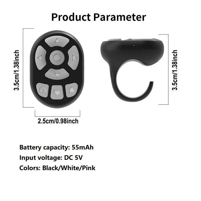 Wireless Remote Control Ring, 1 Count Selfie Video Controller for Smartphone, Automatic Page Turner for Various APP, Mobile Remote Control, Black