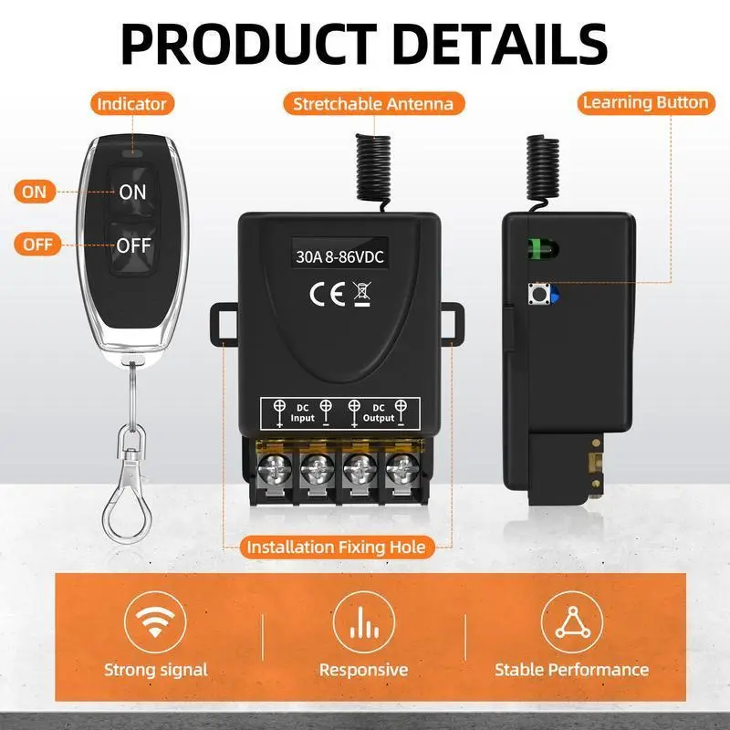 Through learn code setting, safe and easy to add or remove controller. The singal can pass through walls. Max range is up to 328ft (100m) without obstacle.
