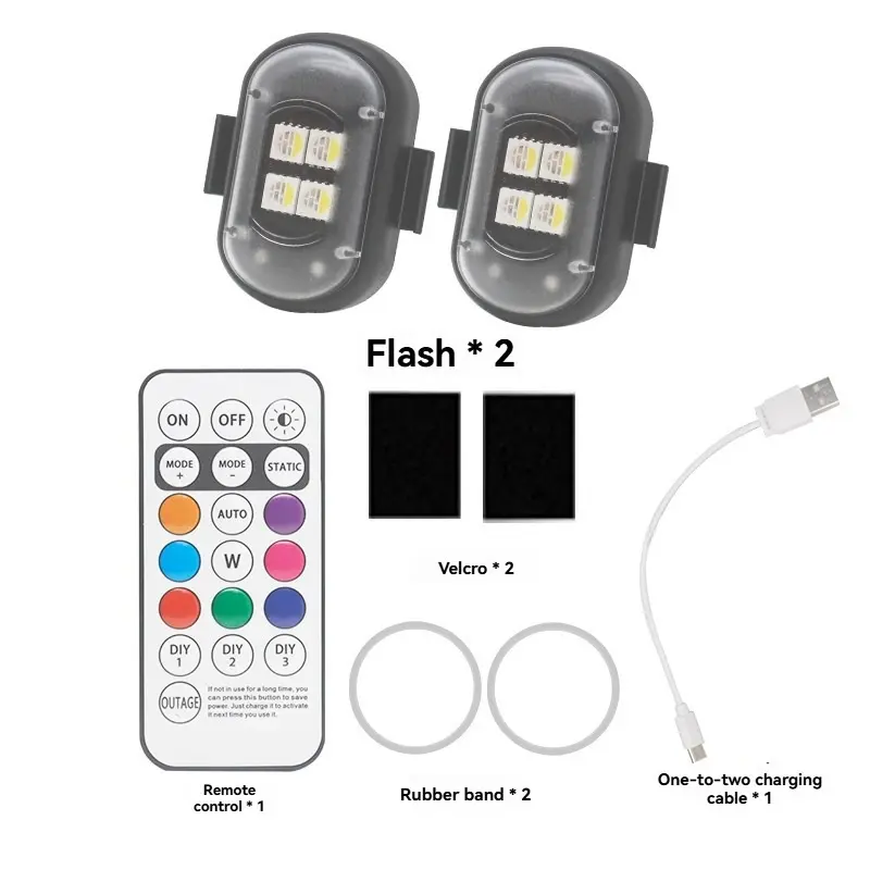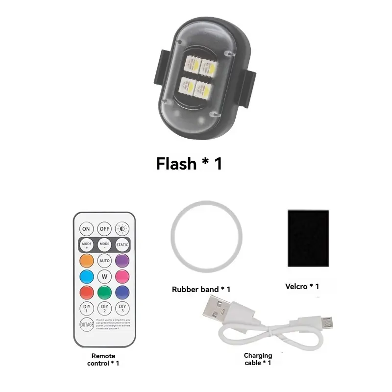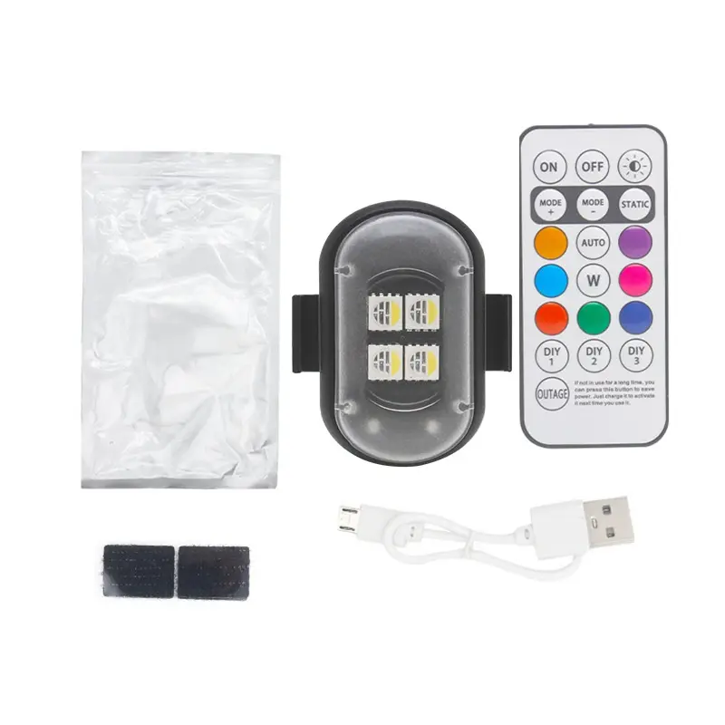 Package Includes:1x LED Strobe Warning Light, 1x Wireless Remote Control, 1x USB Charging Cable, 1x Magnetic Base, 1x 3M Adhesive Pad.