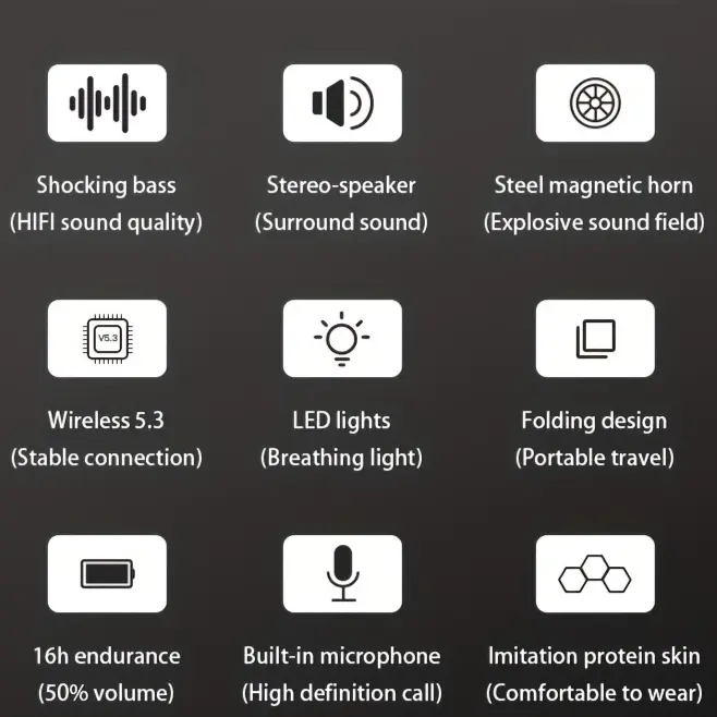 Ever wanted headphones that not only sound amazing but also light up your vibe? Meet the YANUAIA Bluetooth Headphones with RGB LED lights that bring your music to life. Whether you're hitting the trails, working out, or just chilling at home, these wireless headsets deliver rich HiFi bass and crystal-clear sound. The powerful steel magnetic driver and nine core technologies combine for a booming stereo surround experience. With wireless Bluetooth 5.3, enjoy stable and fast connection without tangled cords. Plus, the multi-function features let you tune into FM radio, play music from TF cards or USB drives, making your audio options endless. Designed for comfort, the foldable headphones sport ergonomic earmuffs perfect for long wear during sports or gaming. The 400mAh battery gives you up to 16 hours of continuous playtime, and quick 1-2 hour charging means less downtime. Inside the box, you get the headphones, a charging cable, and a user manual to get started fast. Ready to upgrade your sound and style? Grab your YANUAIA headphones and light up your music adventures today!
